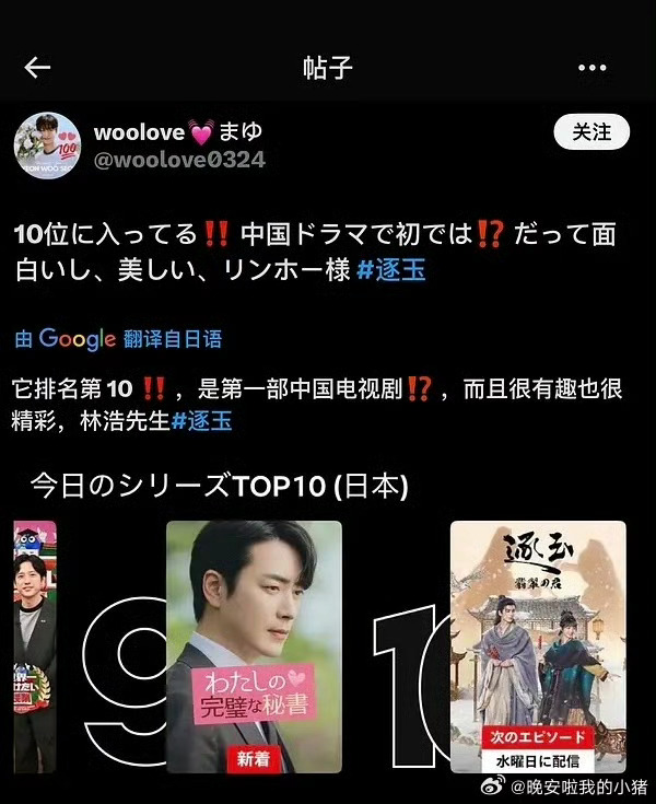 逐玉进入日本网飞TOP10🎉恭喜张凌赫《逐玉》进入日本网飞TOP10!还是第一