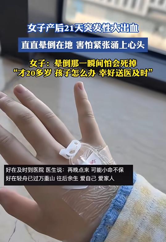 3月5日,重庆,一女子产后21天时,在家突发大出血,见鲜血像水龙头一样止不住,她赶紧联系丈夫赶回家,在前往车库准备上车时,就因为失血过多晕倒,好在送医及时,医生称再晚来一会小命不保!网友:太吓人了! 很多人都觉得,女人生完孩子,只要熬过产房那几个小时,就等于闯过了最危险的关,剩下的就是安心坐月子、照顾宝宝就好。 但其实,并不是这样。 这天,在家坐月子的这位女子像往常一样,在家陪着宝宝,趁着宝宝熟睡的间隙,还想着起身收拾一下散落的婴儿衣物。 一开始,她只是觉得下身有些轻微的坠胀感。 这种感觉在产后这段时间偶尔也会有,她没太在意,依旧弯腰收拾着衣服。 可就在她起身想去给宝宝盖好被子的时候,突然感觉不对劲,低头一看,瞬间就慌了神——鲜血顺着裤腿往下淌,滴在地板上,一下就晕开一大片。 仅仅一小会儿,她就感觉自己的腿已经被鲜血浸湿,浑身开始发软,头晕目眩的感觉一阵阵袭来,眼前的东西都开始变得模糊。 她心里很清楚,这绝对不是正常的恶露,这种出血量,根本不是自己能扛住的,她第一反应就是赶紧给丈夫打电话,只一个劲地喊着让丈夫赶紧回家,说自己流了很多血。 电话那头的丈夫,一听这话,不管手里正在忙的事情,直接就开始往家赶。 而这边,女子挂了电话之后,强撑着身体,慢慢挪到沙发上坐下,她不敢再乱动,生怕一动出血量就更大,可即便这样,鲜血还是止不住地流。 不一会儿,丈夫就气喘吁吁地赶回了家。 因为家里离医院还有一段距离,他们决定先开车去车库,尽快赶往医院。 就在两人走到电梯口时,女子忽然猛地想起,自己出门太急,忘记带上眼镜了。 她的视力本就不好,没了眼镜,眼前更是一片模糊,后续无论是就医还是坐车,都会格外不便,于是便用微弱到几乎听不清的声音,拉了拉丈夫的衣袖,让他折返回家帮自己取一下眼镜。 丈夫看着妻子虚弱的模样,满心都是心疼和焦急,便反复叮嘱妻子千万不要走开,等他取了眼镜就立刻回来。 丈夫走后,女子一个人站在电梯口,头晕的症状愈发严重,眼前的一切都变得扭曲模糊。 恍惚间,她误按了电梯按钮,电梯门缓缓打开。 昏沉中她心想,反正也是要去地下车库坐车,不如干脆先去车库的车子旁等丈夫。 这个念头一出,她便扶着电梯壁,艰难地挪进了电梯。 好不容易等到电梯抵达地下车库,门一打开,她便扶着墙壁,一步一步踉跄着往车子的方向挪动。 就在她费尽全身力气,终于走到车子附近,身体突然一阵剧烈的发软,不受控制地向前倾倒,双眼一黑,彻底失去了意识。 就在女子晕倒在地的几分钟后,取完眼镜匆匆赶回车库的丈夫,恰好看到了这一幕。 他疯了一样冲过去,一把将妻子紧紧抱住,一边以最快的速度打开车门,小心翼翼地将妻子抱上车,便立刻发动车子,朝着最近的医院疾驰而去。 万幸的是,一路上还算顺利,丈夫直接把车子停在医院门口,就跳下车大声呼喊着医生和护士。 好在最终,妻子的性命保住了,但医生也说到:真的太危险了,再晚来一会儿,就真的回天乏术了。 后来,这件事被传到了网上,相关的视频和文字片段一经发出,就引起了网友们的广泛关注。 大家纷纷留言说:“一定要重视产褥期的护理,不要忽视任何异常情况,哪怕只是一点点不舒服,也要及时就医,千万不能大意。” 还有一些网友留言说:“看完这件事,更能体会到当妈妈的不容易,生孩子不仅要经历分娩的痛苦,产后还要面临各种未知的风险。” (信息来源:红星新闻《重庆一女子产后21天突发大出血,离家不久瞬间晕厥倒地,当事人:鲜血像水龙头一样流,止不住》)