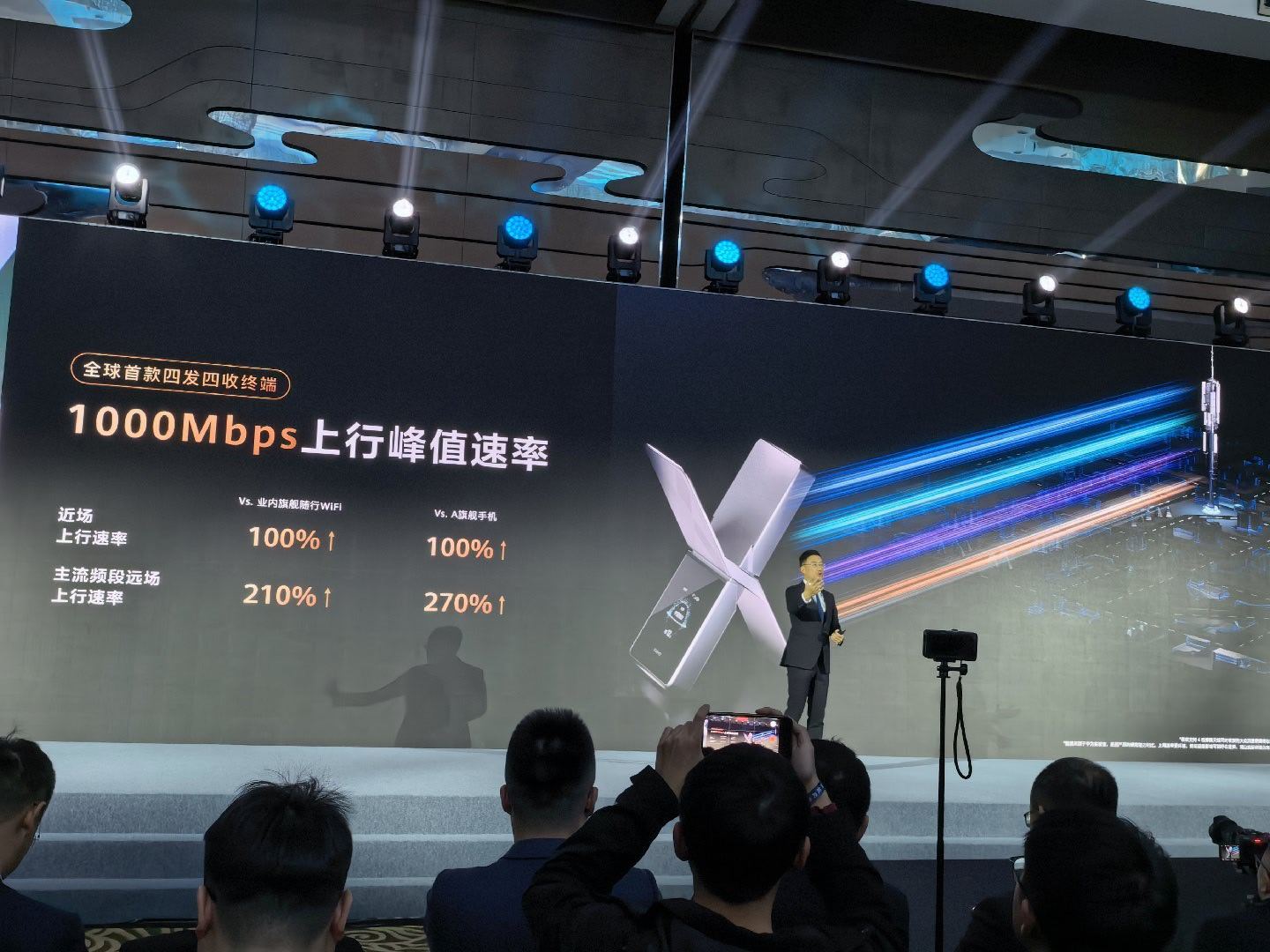 首先优化了上传的速度,峰值1000Mbps,不仅仅比友商的随身WiFi更快,比旗舰手机都还要快,做到了四发四收其次是网络性质,不是普通的物联网卡,现场移动的董事长亲自站台,连接的是中国移动VIP网络,相当于高端的全球通用户权限,不过具体的套餐详情还没看到,到时候可以看看具体的签约速率如何。