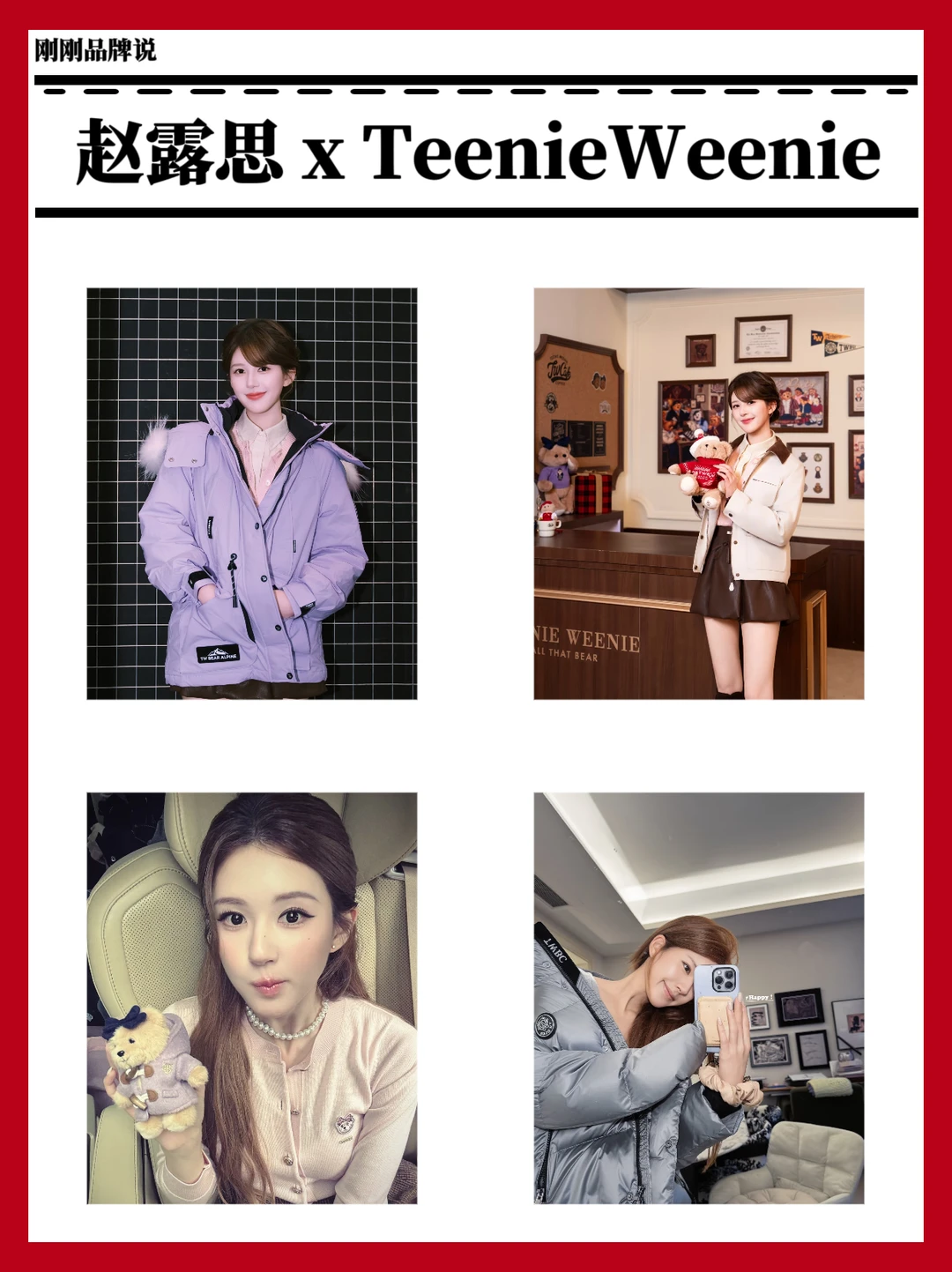 3月10日,TeenieWeenie官宣赵露思为全球品牌代言人!赵露思一直以来都以清新自然、充满活力的形象示人,她的甜美治愈感和TeenieWeenie“ALL THAT BEAR”的品牌内核高度契合,简直是天选代言人!