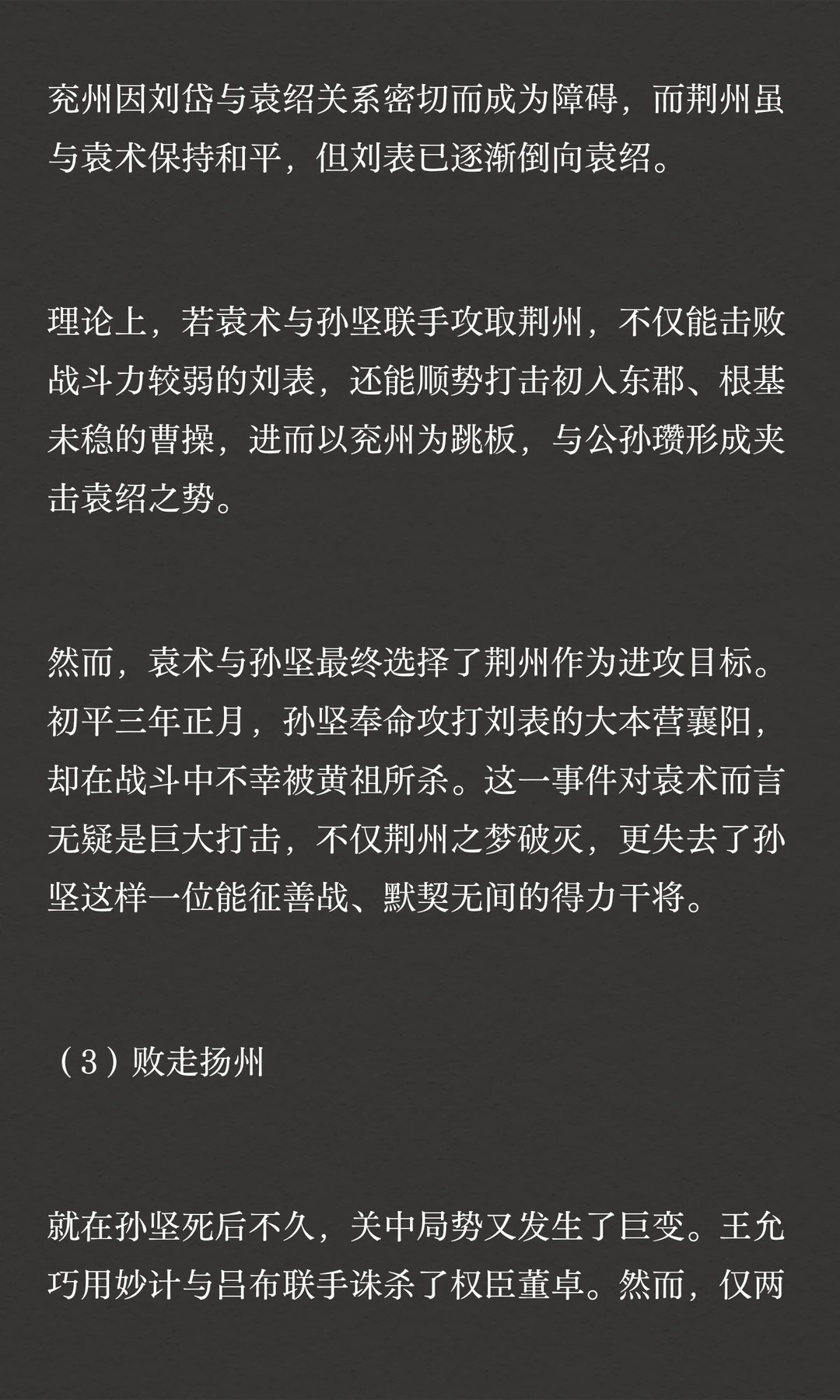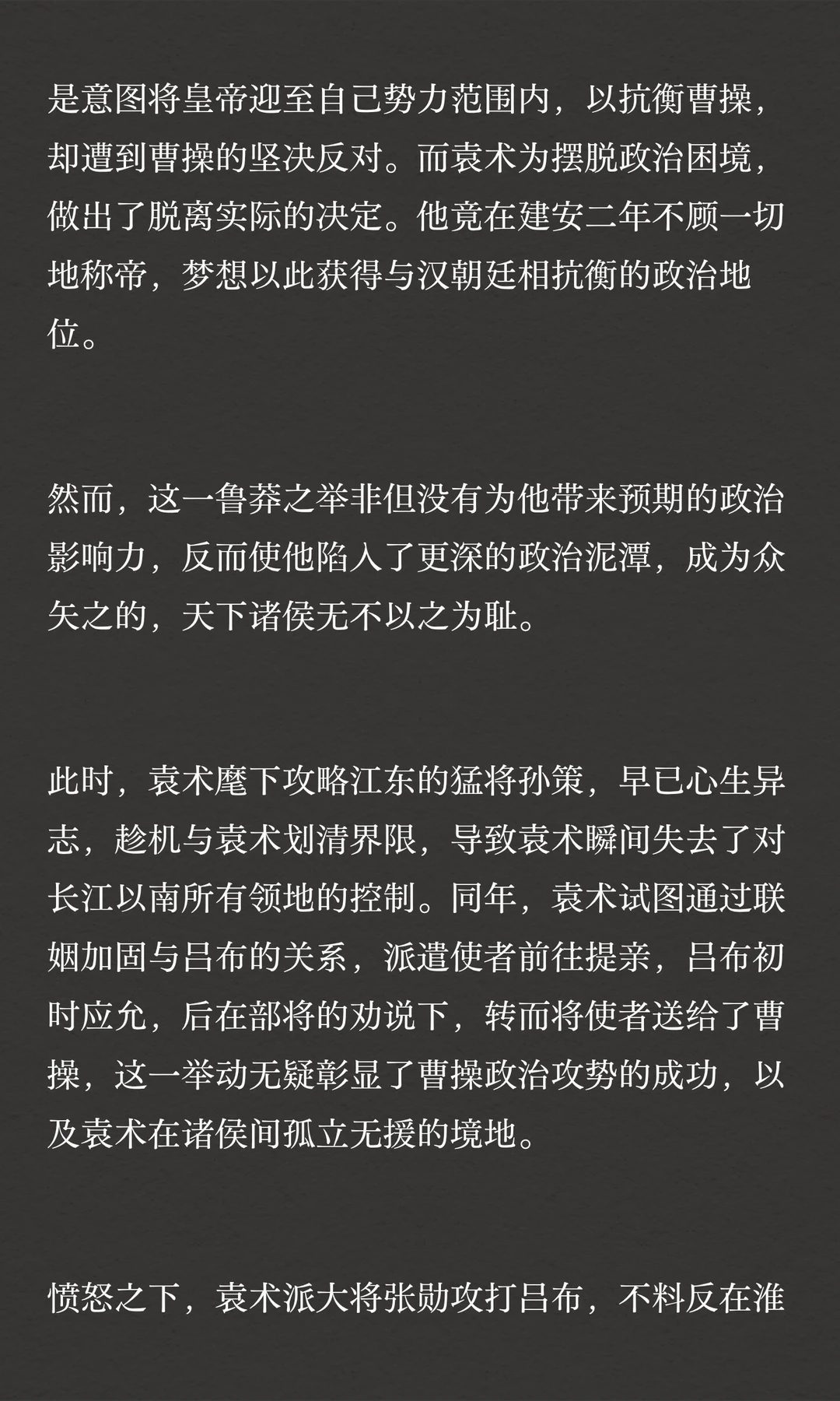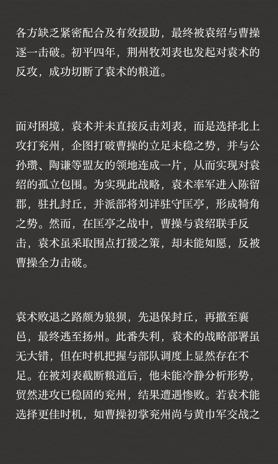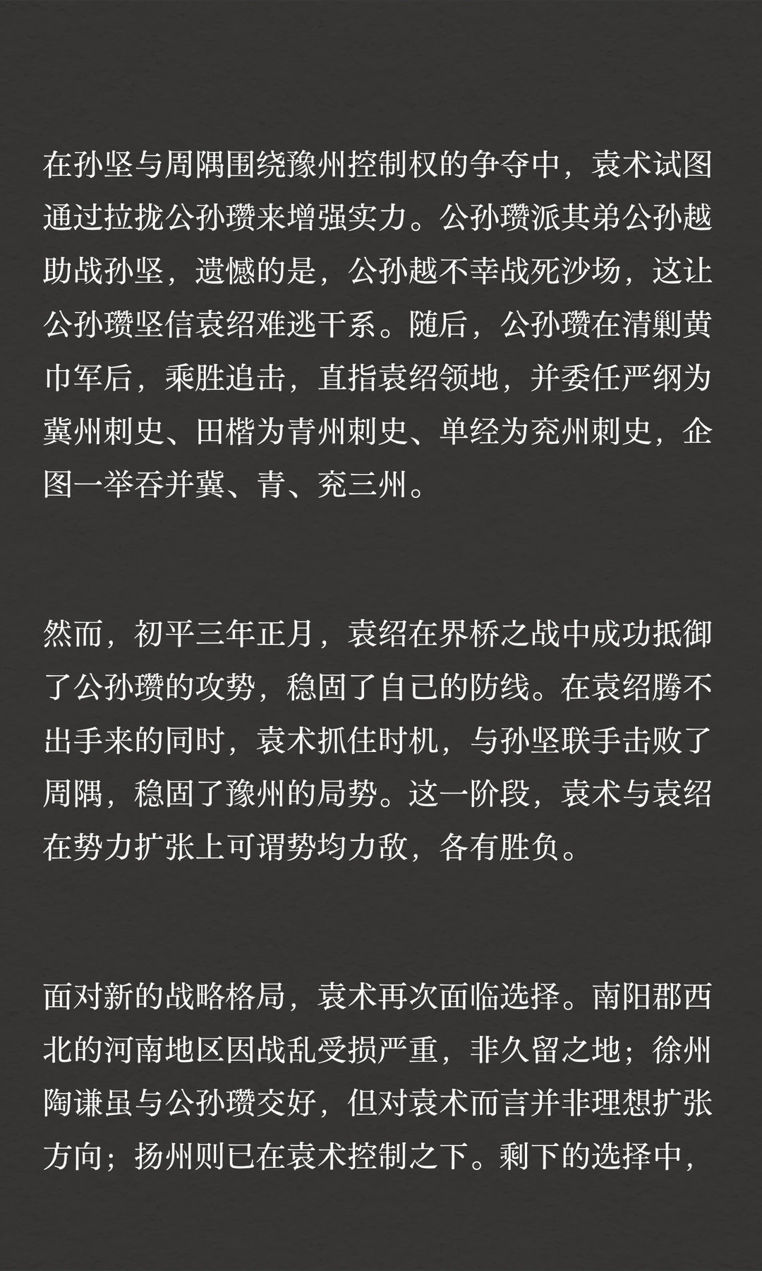 袁术从东汉世家公子跌落,凭借家世和声望在南阳崛起,但因策略失误和内部纷争,最终被曹操击败,众叛亲离,被迫称帝却加剧孤立,最终在逃亡中屈辱而死。