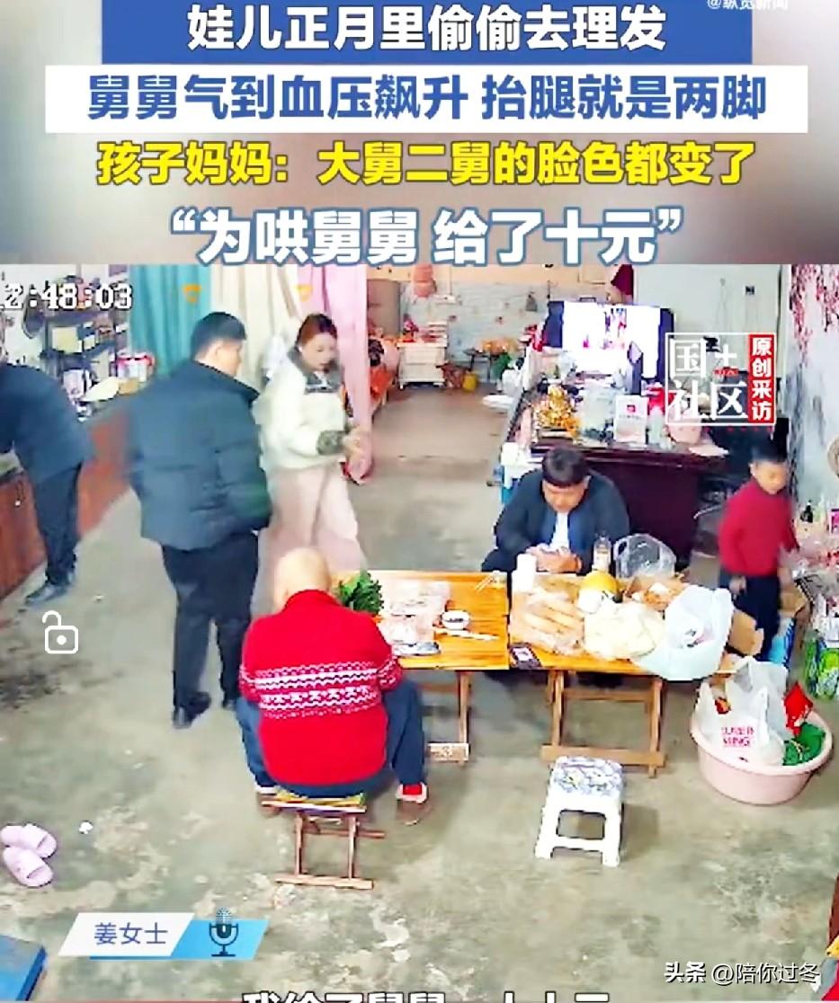 外甥正月偷偷剪发,舅舅上来就是两脚![捂脸] 正月到底该不该剪头发?太搞笑啦!我记得小时候跟我舅要压岁钱,给少了就往理发店跑,我舅就跟在后加钱。但说到底这还是封建迷信,大家当个乐看就好别当真! 3月6日,据众揽新闻报道,河南濮阳,正月还没有过,外外甥就偷偷跑到理发店剪了头发,回家后舅舅发现气的当成“红温”,当场就试图性的踢了外甥两脚。 全家人哭笑不得,妈妈声称为了哄舅舅,外甥主动掏出钱来,给每个舅舅发了10元。大家也都知道此事只是个玩笑而已,并没有放在心上。 其实我们在生活中要正视传统风俗,“取精去糟”不要被封建迷信带偏,除旧迎新,人们在正月理发是以崭新面貌迎接新的开始,正月理发属正常现象,与舅舅健康毫无关系。