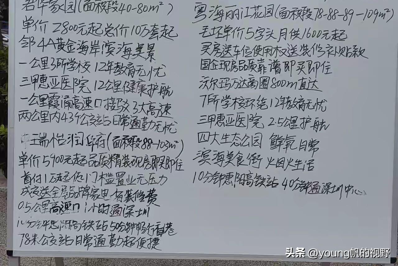 曾经惠州惠阳大亚湾片区也是房地产最火热的板块。这里毗邻深圳,当年甚至还有深圳地铁修到惠阳的规划 ,因此也吸引了不少深圳人来此购房。当年的房价一度也曾推高至惠州的最高水平。但从目前中介挂牌的信息来看,目前的价格距离高峰期已经回落了不少。大部分的住宅均价维持在5000~6000元左右。甚至还有三四千元的。