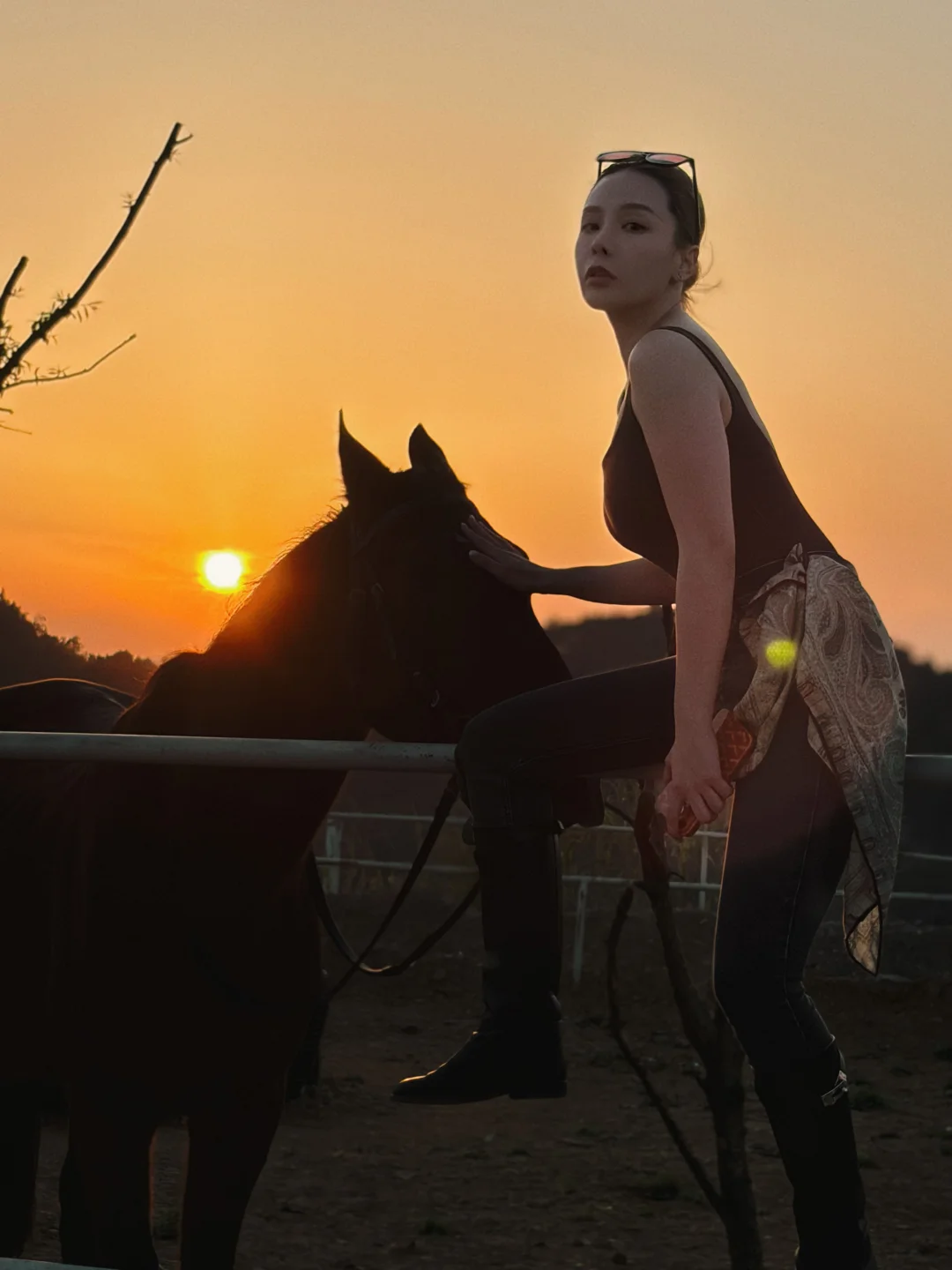 英气女生穿搭 今日穿搭ootd 骑马看世界马背旅行 骑马看日落
