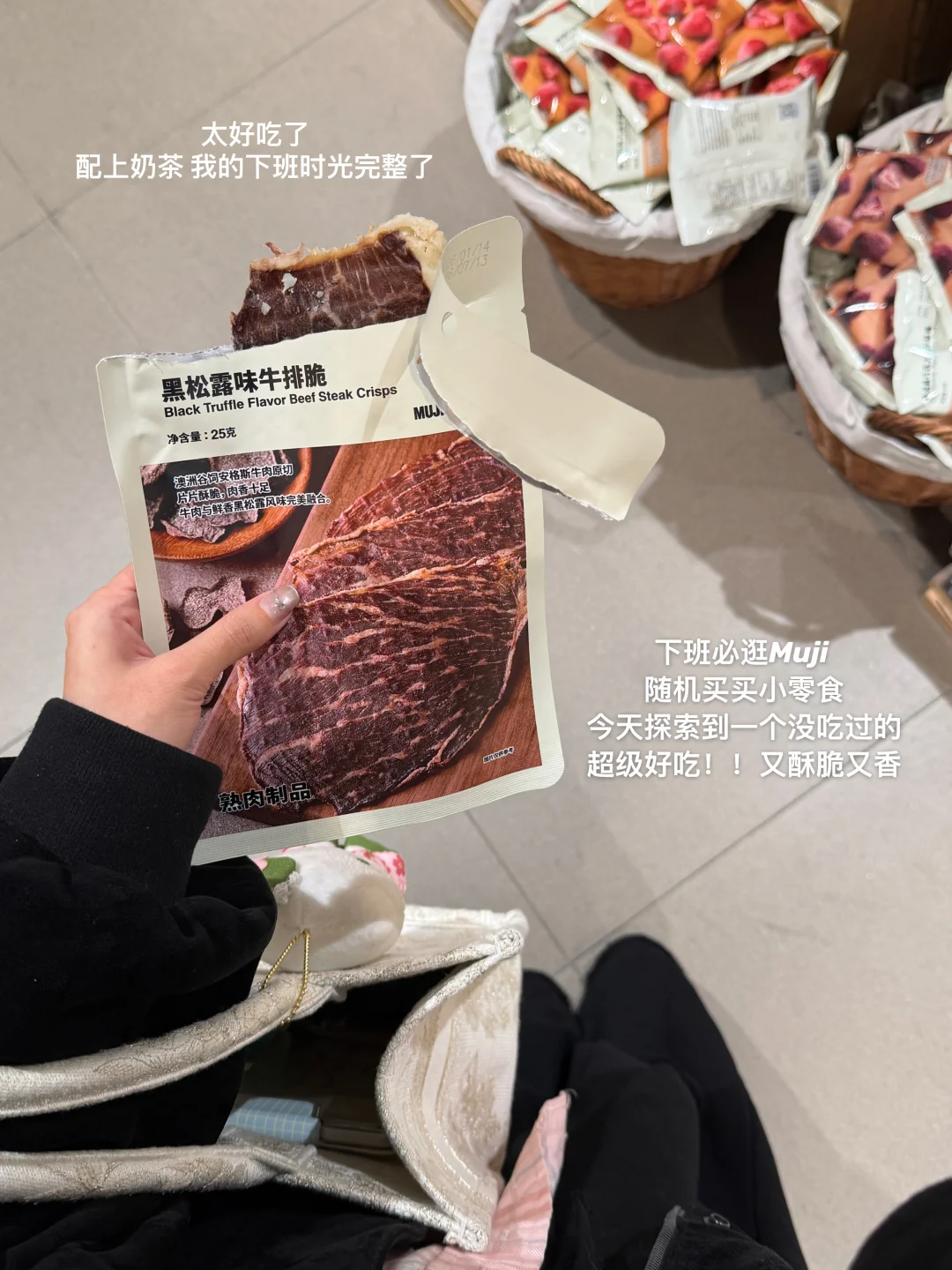最近下班必逛Muji,挖到超好吃的小零食!配上奶茶,回家换上舒服的休闲T恤,直接大躺平