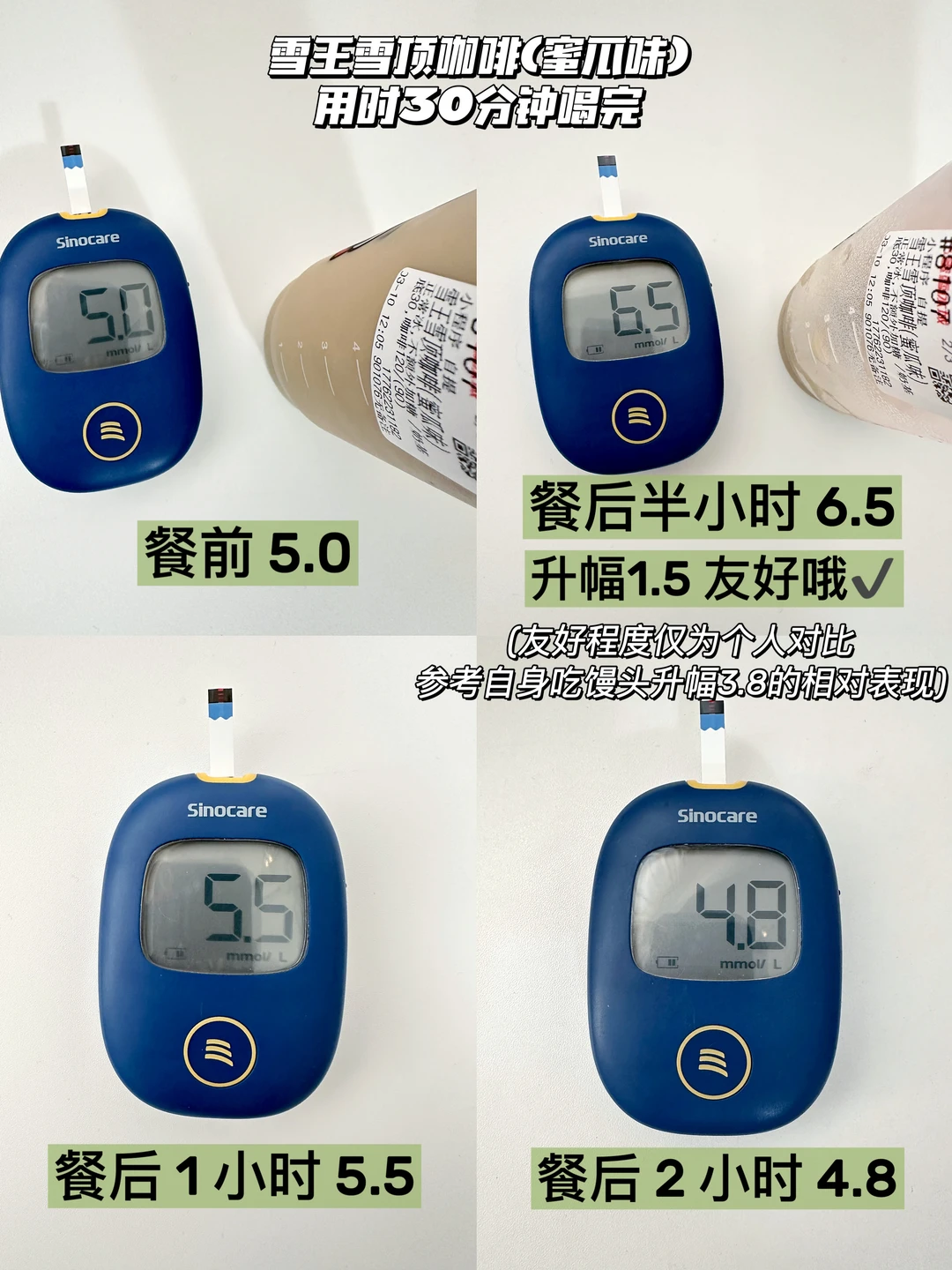 雪王家的蜜瓜味雪顶咖啡升糖测试来咯[鼓掌R][鼓掌R]