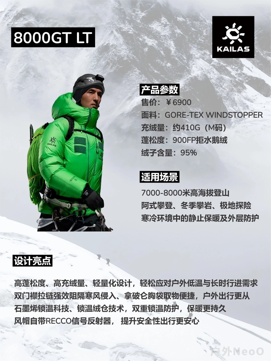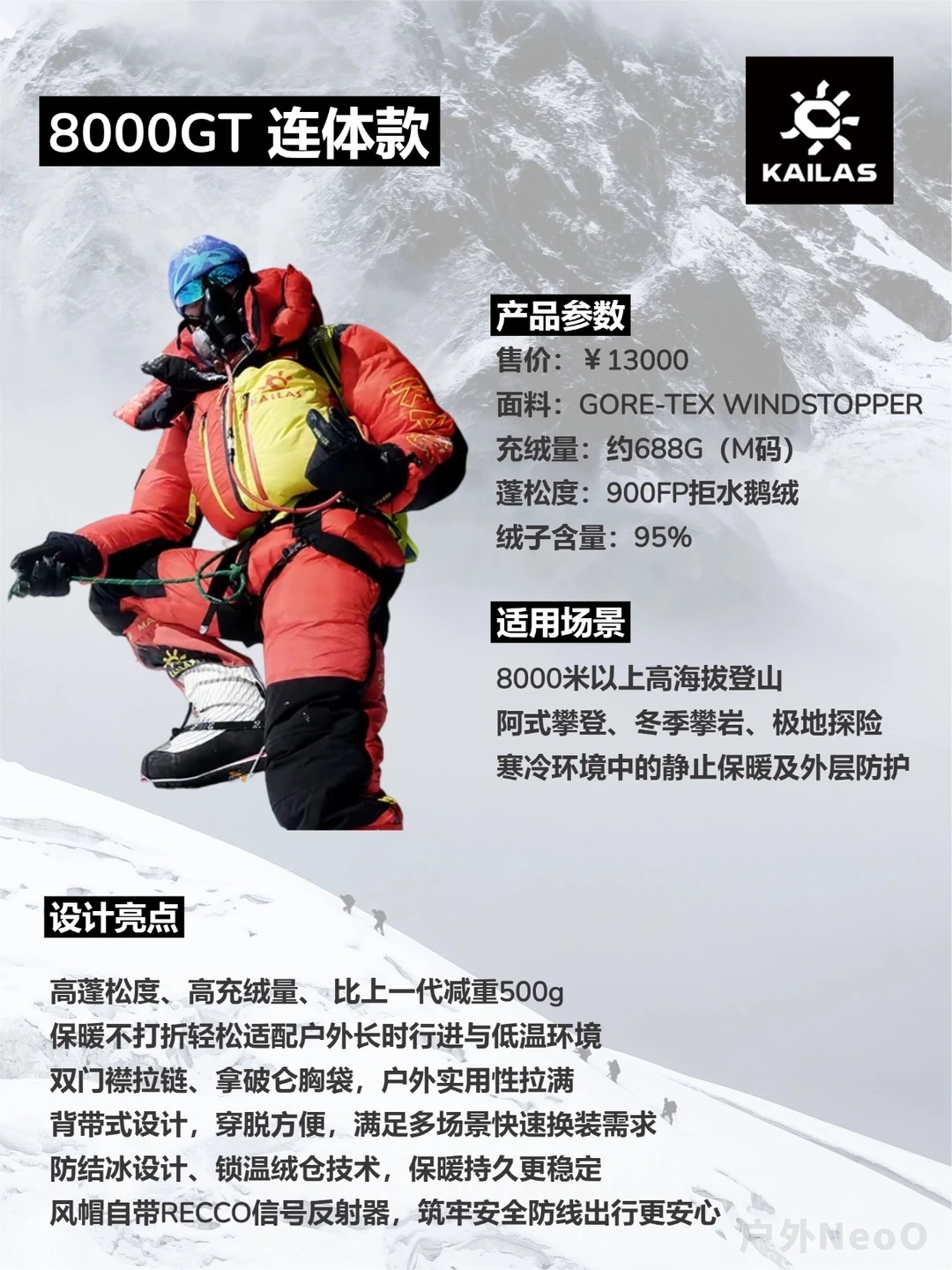 - 适合:8000米级山峰轻量化冲顶
