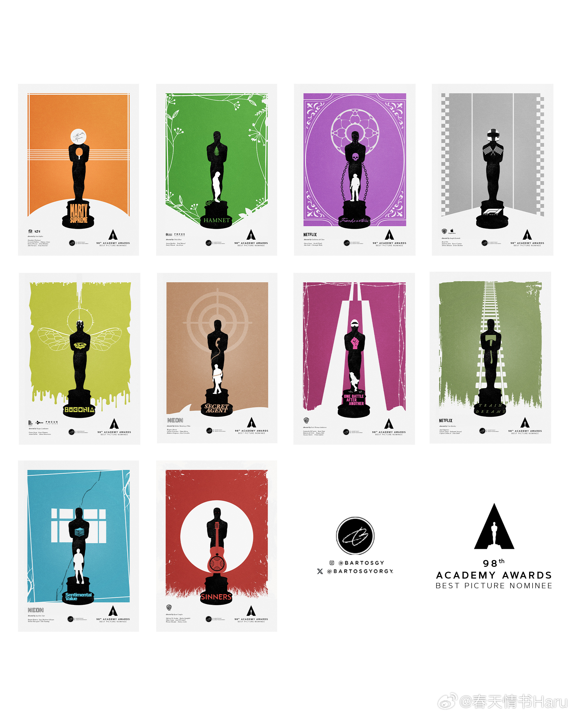 一组第98届奥斯卡最佳影片提名电影的艺术海报 by Bartos Gyorgy