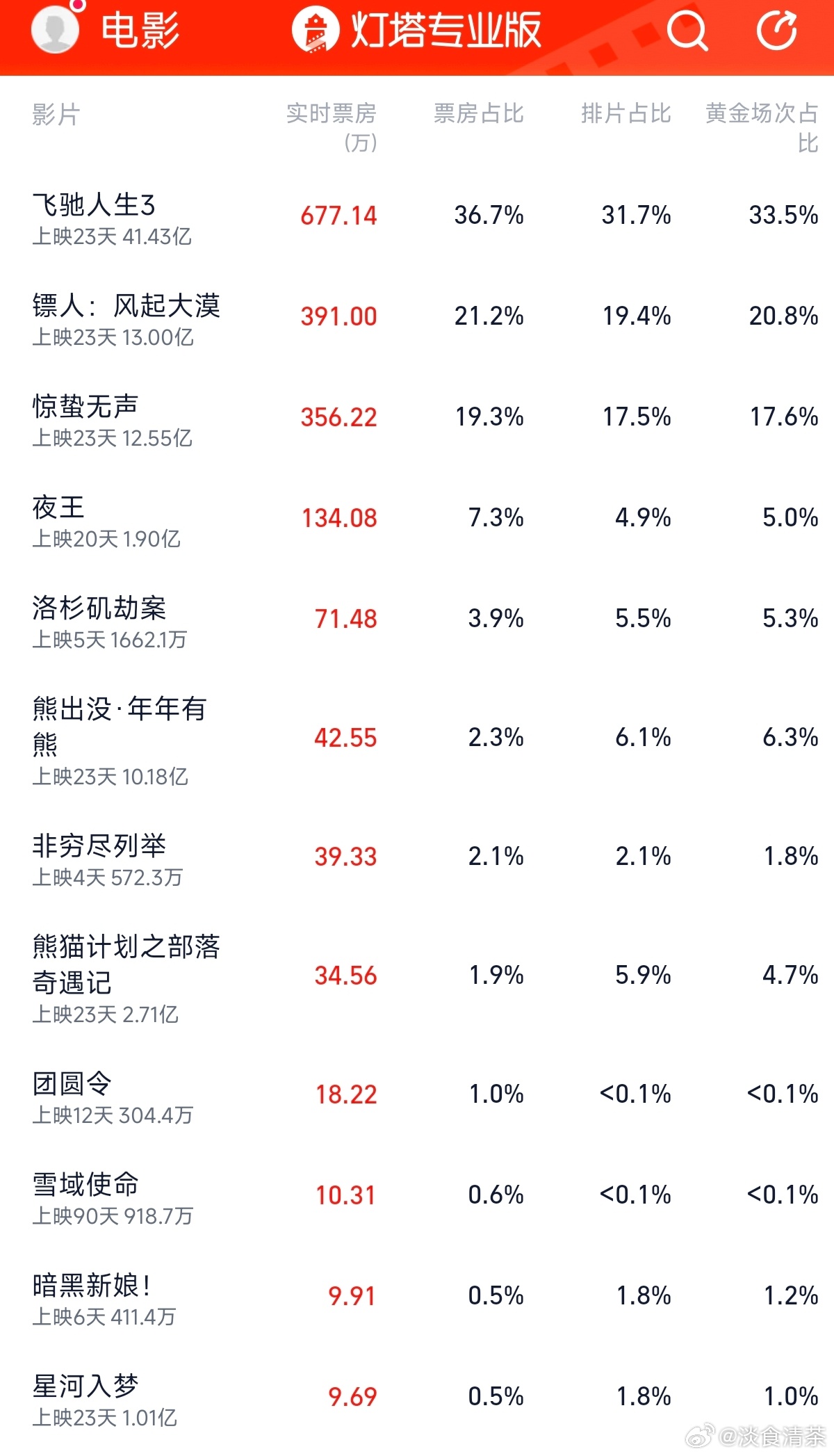 春节档电影预测VS目前票房 猫眼/灯塔/目前票房《飞驰人生3》42.33亿/43.67亿/ 41.43亿《镖人》 9.04亿/ 8.41亿/ 13.00亿《惊蛰无声 16.32亿/ 21.42亿/ 12.55亿《熊出没》 11.15亿/ 13.65亿/ 10.18亿《熊猫计划》 4.81亿/ 5.22亿/ 2.71亿《星河入梦》 2.04亿/ 3.00亿/ 1.01亿