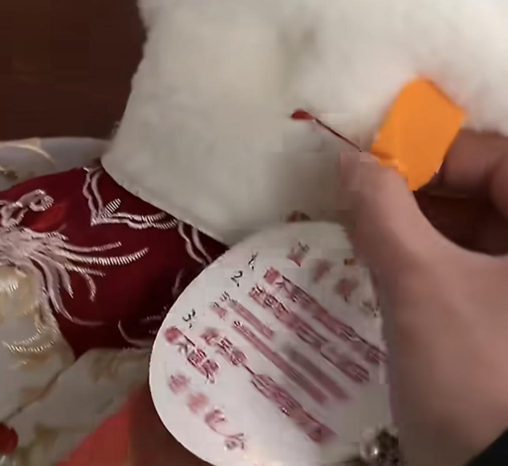 真的是“太聪明了”, 女子买婚服, 为了不让吊牌漏出来,用红色别针固定在领口位置