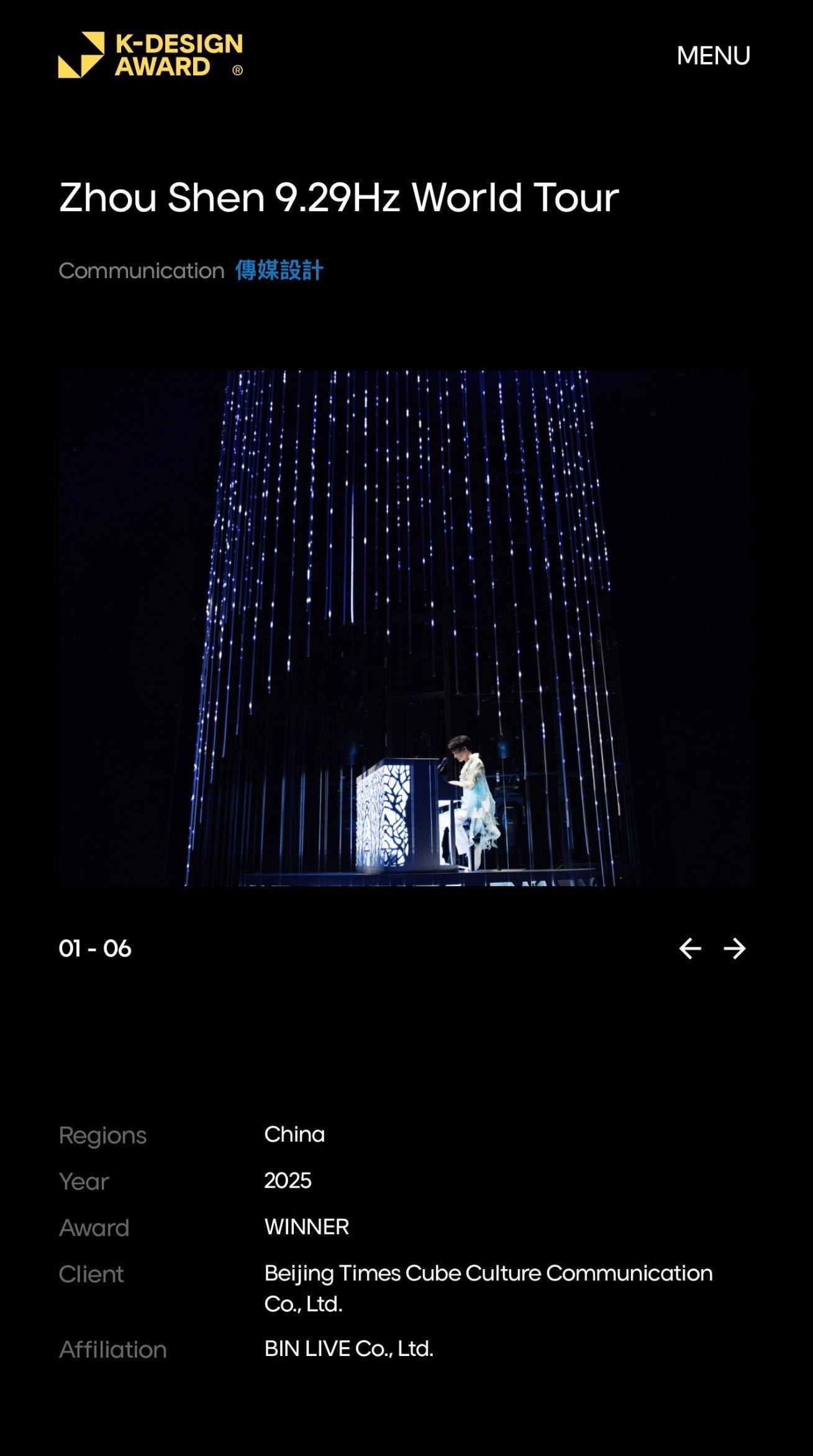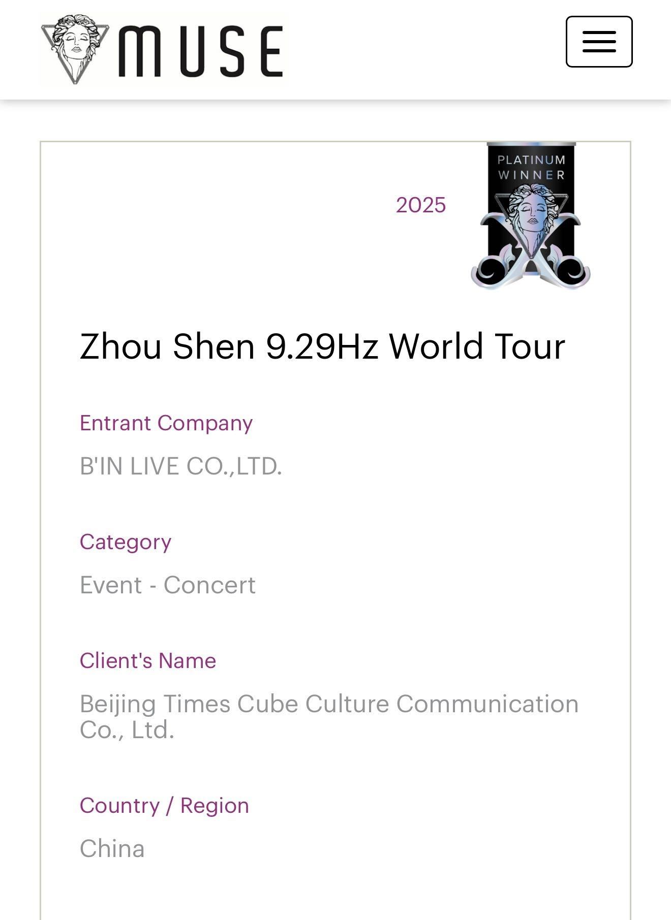 周深世巡获三项国际大奖 周深巡演连拿三个国际设计大奖!9.29Hz世巡凭借创新的舞台视觉呈现与沉浸式体验,斩获Muse设计奖铂金奖、DFA亚洲设计奖等三项荣誉!耳朵享受的同时,眼睛也在过年!