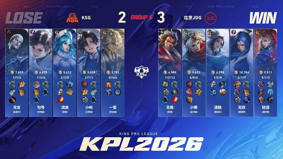 2026KPL春季赛常规赛第三轮,在北京JDG对着KSG的第三小局比赛中,轻语使用元歌帮助北京JDG击败老东家KSG,这也是对抗路元歌时隔326天再次获胜。