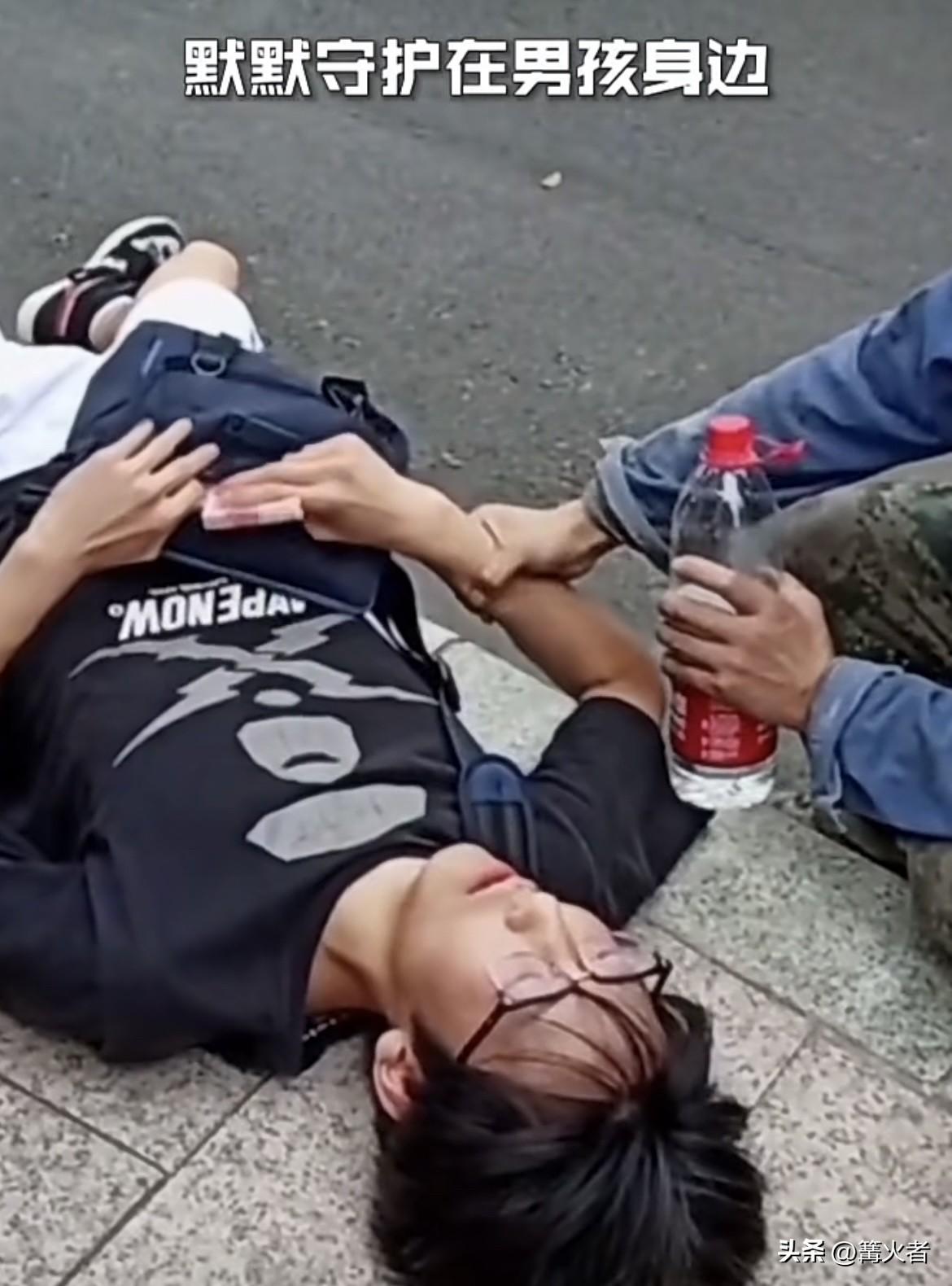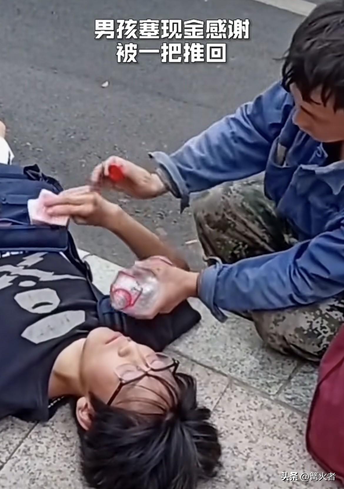 一名学生晕倒路边,一位农民工大哥赶忙上前,拿出矿泉水慢慢给男孩喂水,防止他脱水,还拨打了120。旁边群众也纷纷协助。 男孩为表感谢,颤颤巍巍从挎包掏出百元大钞往大哥口袋塞,却被大哥一把推回。大哥果断拒绝,一直等到救护车来把男孩接走。 这就是善良遇上了感恩,现在社会上讹人事件不少,让很多想见义勇为的人寒了心。但这位农民工大哥,用行动告诉我们,善良和助人无关身份地位,更不是为了钱。必须为大哥点赞!