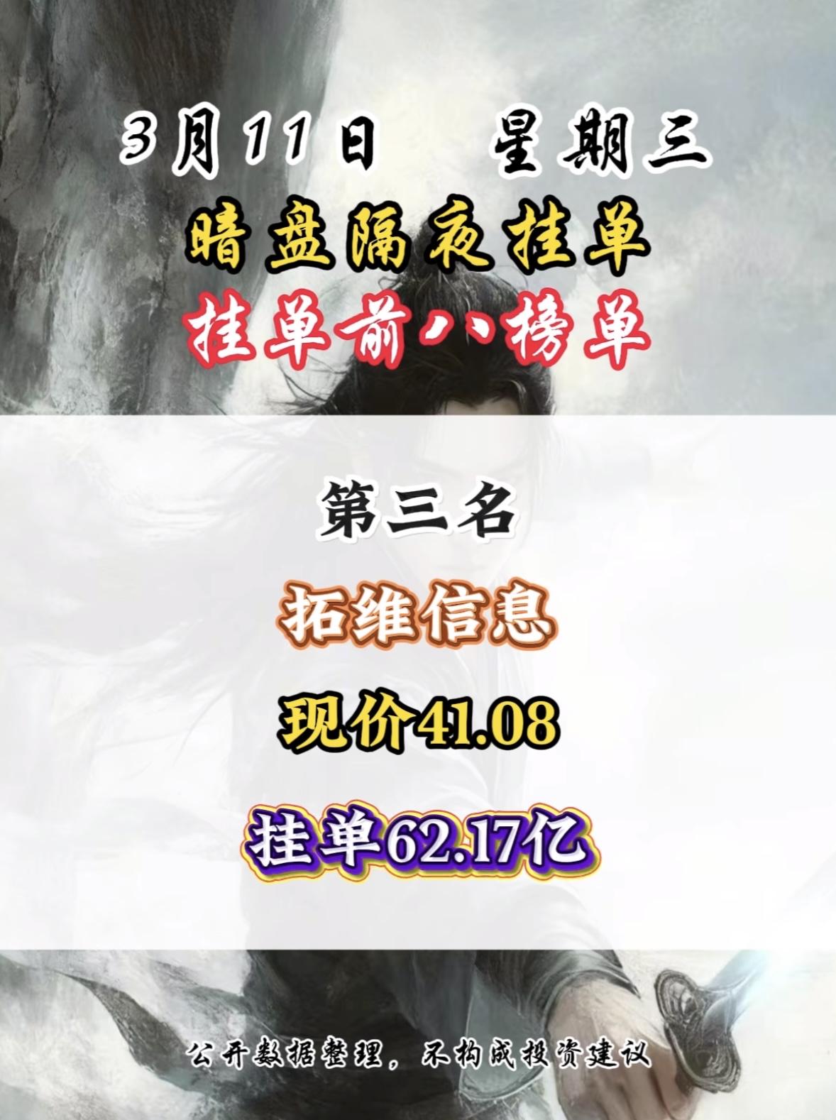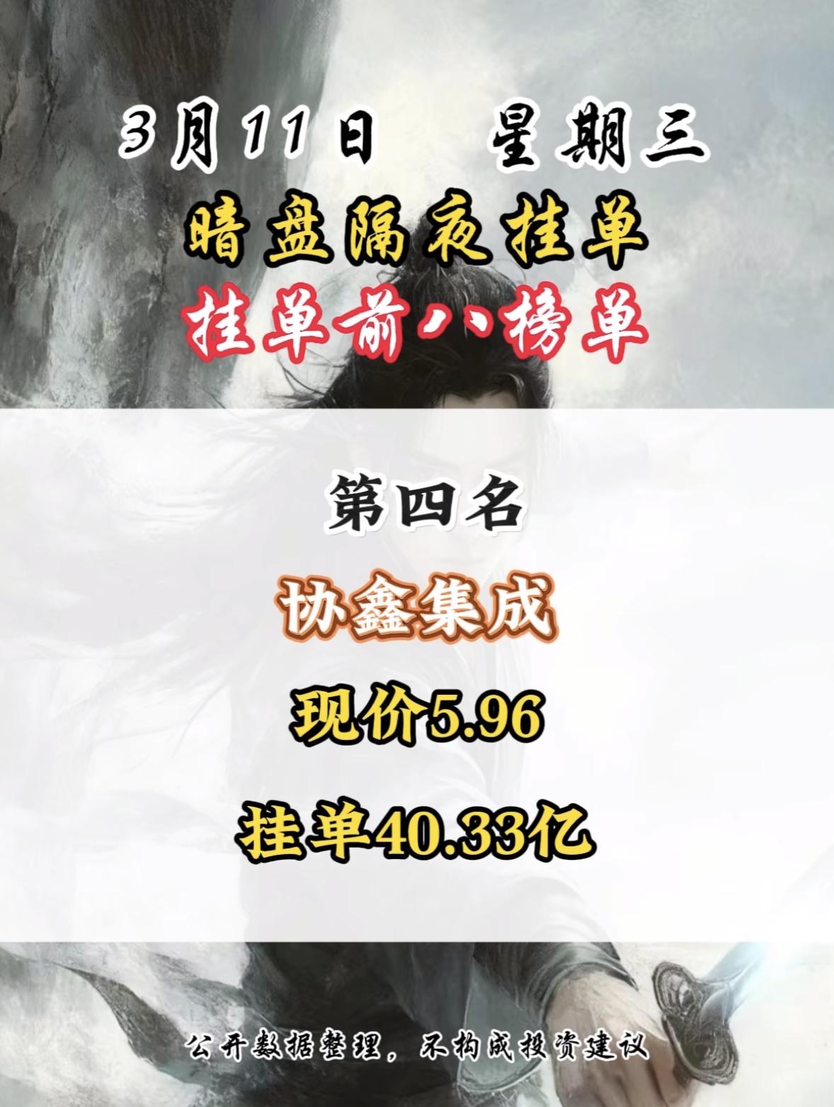 3月12日周四暗盘隔夜挂单前8名个股揭晓。 3月11日华工科技这只股票可太猛了
