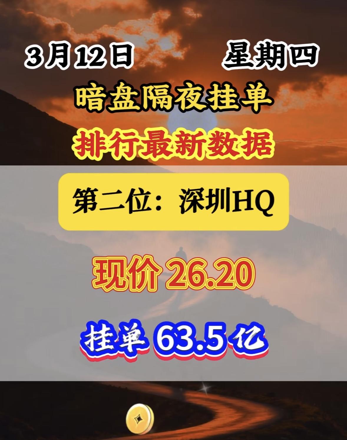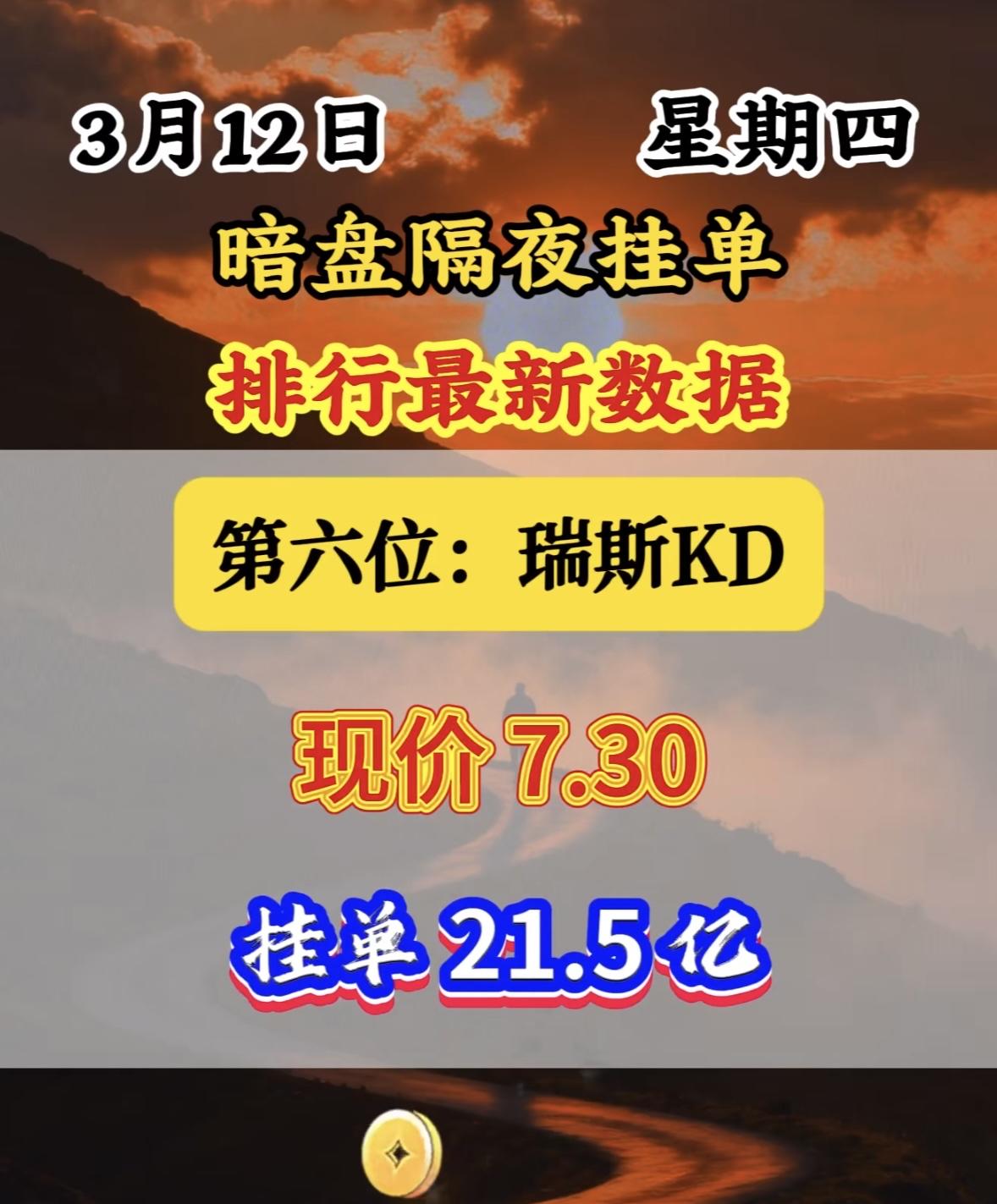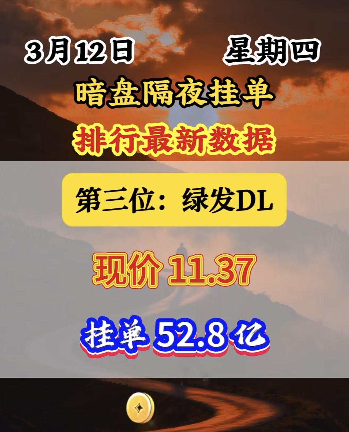 3月12日暗盘隔夜挂单里排名前八位。 这位置还挺微妙。暗盘交易就像是股票市场里的“地下战场”,充满了各种不确定性和机会。排第八位,既不像首位那样引人注目,也不至于太靠后被人遗忘。说不定这背后是某个投资者精心的布局,也可能只是运气使然。也许在后续的交易中,这个排名能带来意想不到的收益,也可能会面临一些挑战。就像一场未知的冒险,谁也不知道这第八位最终会走向何方。
