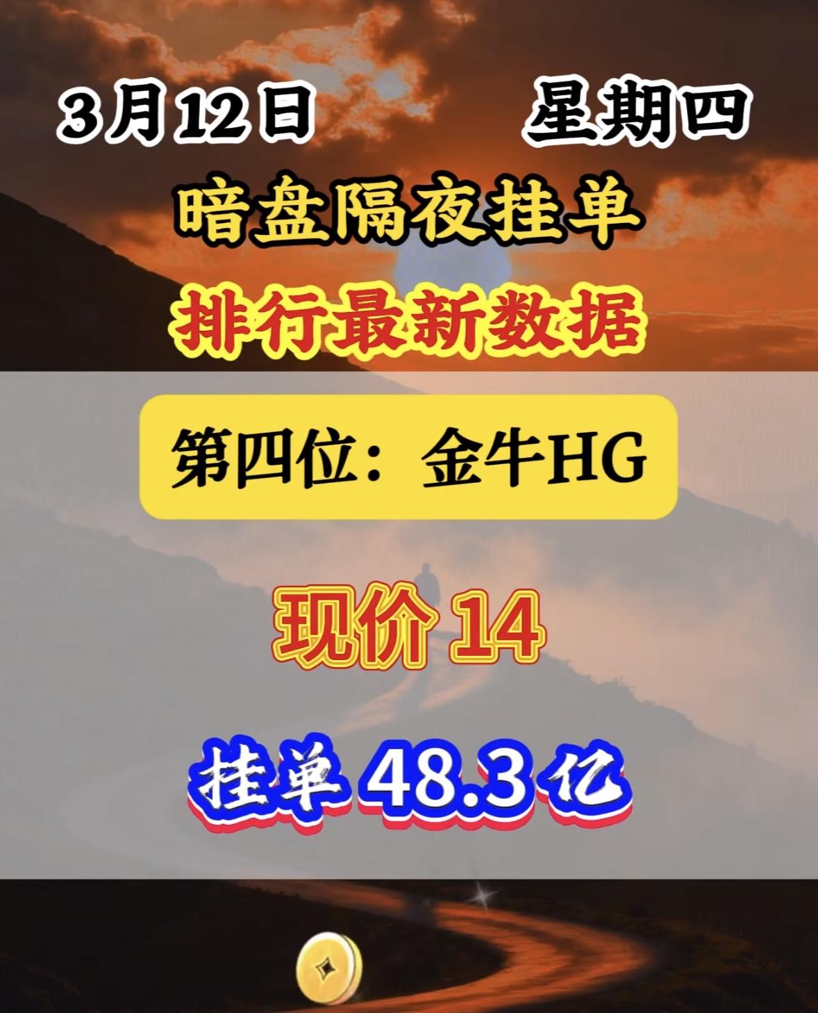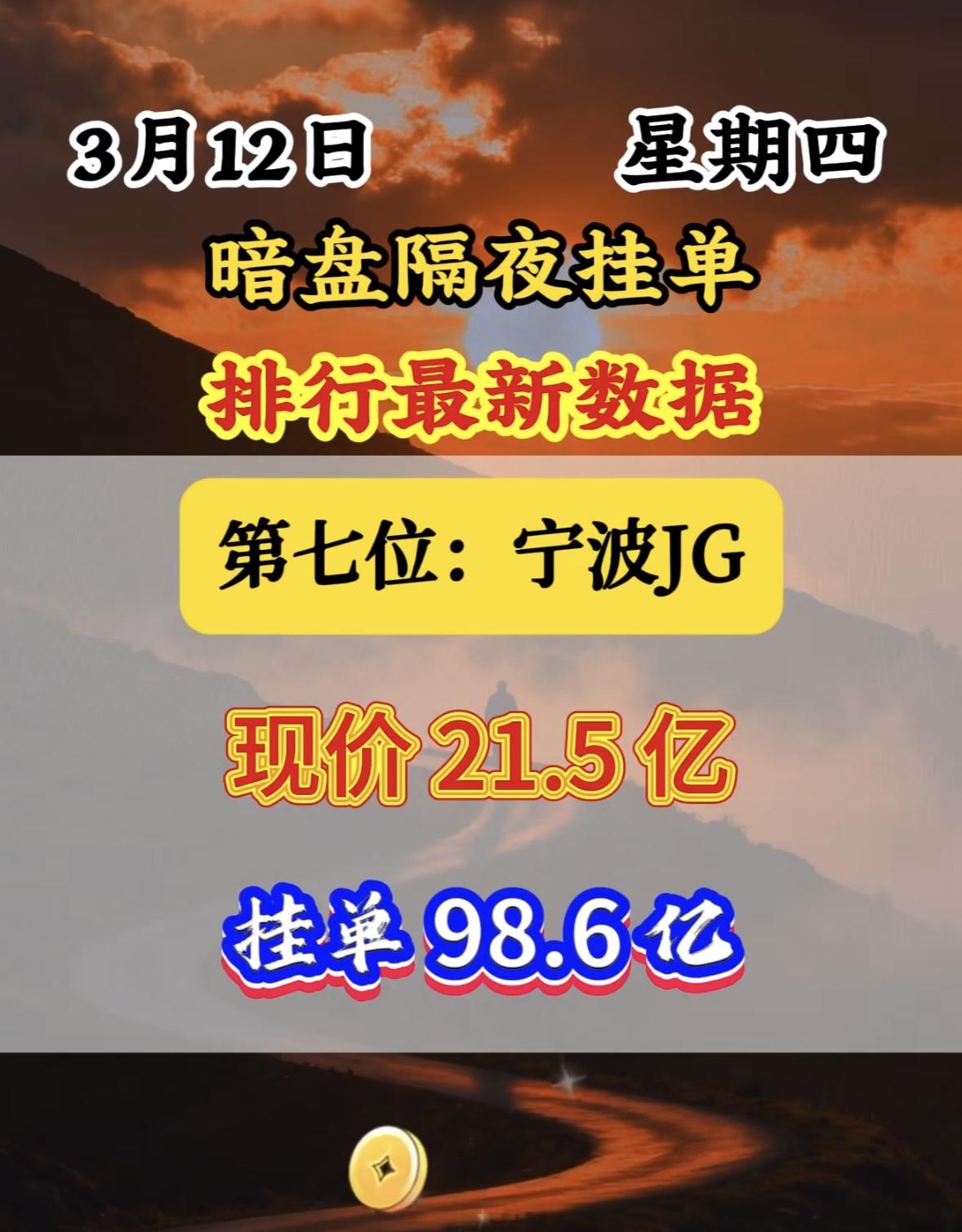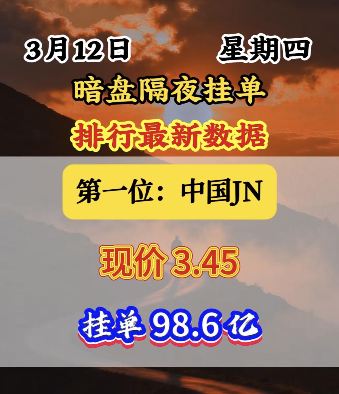 3月12日暗盘隔夜挂单里排名前八位。 这位置还挺微妙。暗盘交易就像是股票市场里的“地下战场”,充满了各种不确定性和机会。排第八位,既不像首位那样引人注目,也不至于太靠后被人遗忘。说不定这背后是某个投资者精心的布局,也可能只是运气使然。也许在后续的交易中,这个排名能带来意想不到的收益,也可能会面临一些挑战。就像一场未知的冒险,谁也不知道这第八位最终会走向何方。