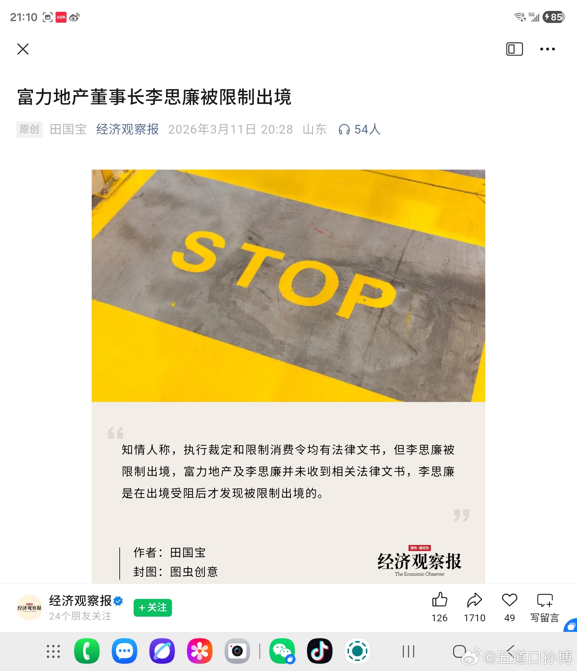 根据经济观察报的消息,富力地产董事长李思廉被限制出境。。。