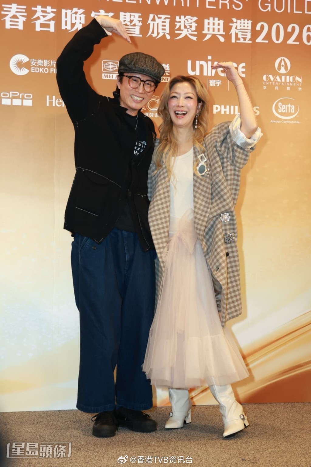 谈及有议员以“夜王年代”为题,倡议振兴尖东再开夜店?二人也赞成,觉得现在香港晚上太静了,如果有大排档更好,因晚上想找地方大家倾偈也没有,市民又可有些小生意做。此外,子华身为编剧出席这活动,也顺道看看是否会碰上好剧本,他表示,去年出席这活动时也有几位编剧找他研究一些剧本是否可以合作,他们希望今年可以撞到一些新编剧大家研究一下。