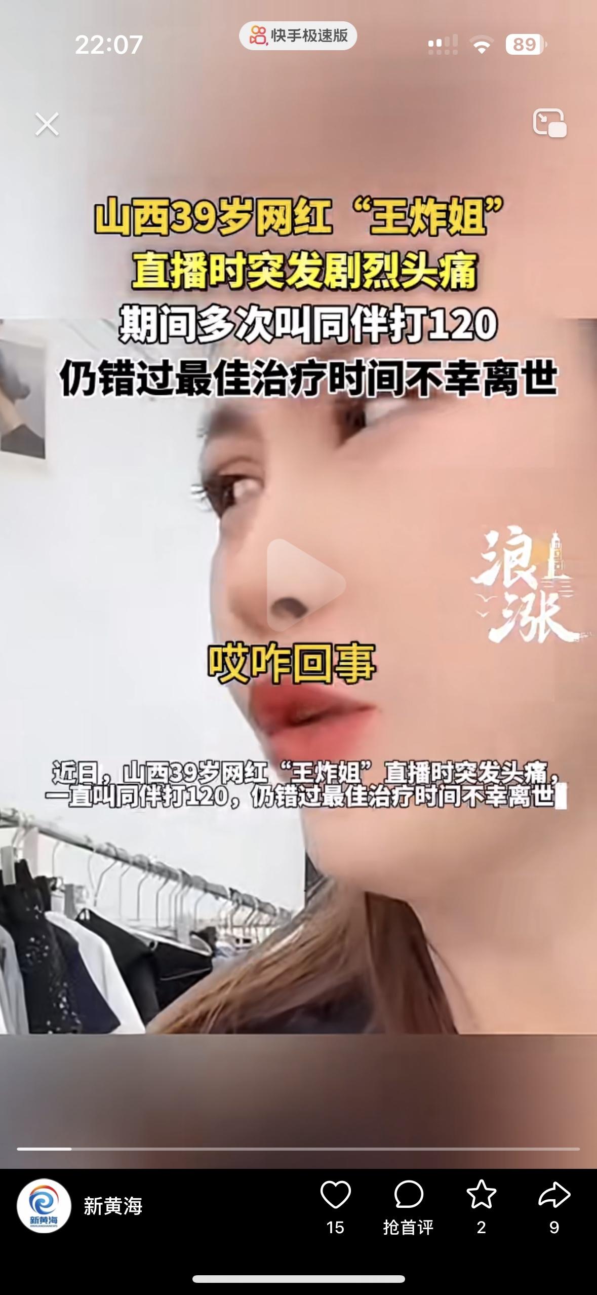 再也不羡慕网红们赚钱了 39岁的女网红直播时突然发生剧烈头疼,她一直呼唤同伴打120,却还是错过了最佳治疗时间不幸去世了 视频里的她,脸上都爆红了,血管已经爆了!看完这个新闻,我一点都不羡慕日进斗金的网红了 她们在镜头前面光鲜亮丽,背后却是熬不完的夜,连轴转的直播,发不完的快递。长期熬夜睡眠不足这都是脑溢血的高危诱因,最可惜的是她才39岁,这么年轻就在直播的时候人没了 钱再多买不回来一条人命,流量再好,换不回来身体的健康!千万不要为了钱透支自己的生命,没了生命,一切都没了