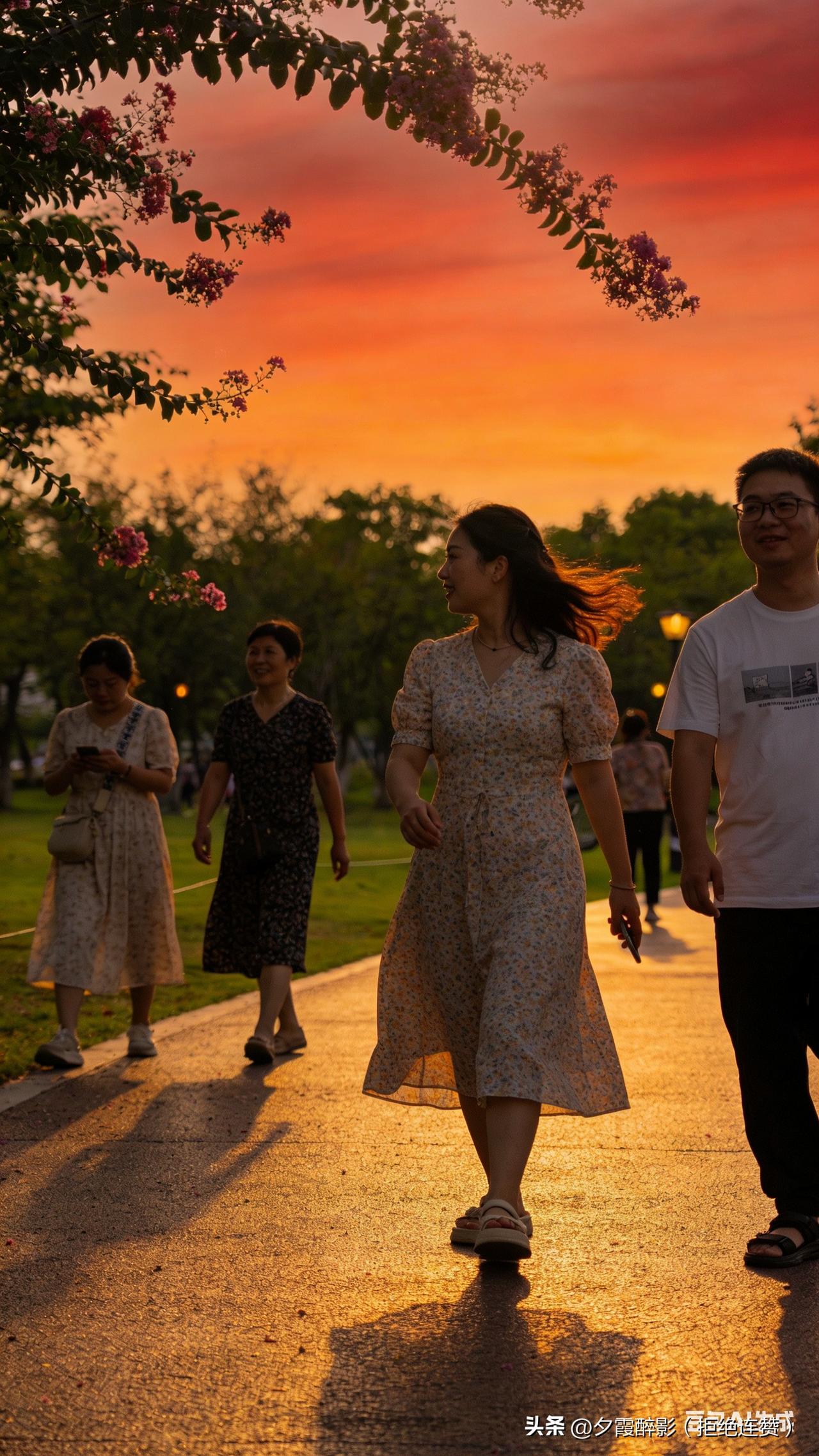 晚饭后约上好友,慢悠悠去公园散步。 落日余晖还映红了天边,晚风裹着刚绽放的花香,轻轻拂过脸颊。 不用赶时间,不用想琐事 就这么走着、聊着,看天色一点点晕染成温柔的橘色 原来最舒服的时光,就这么简单