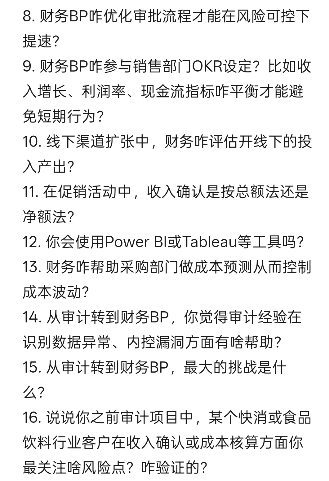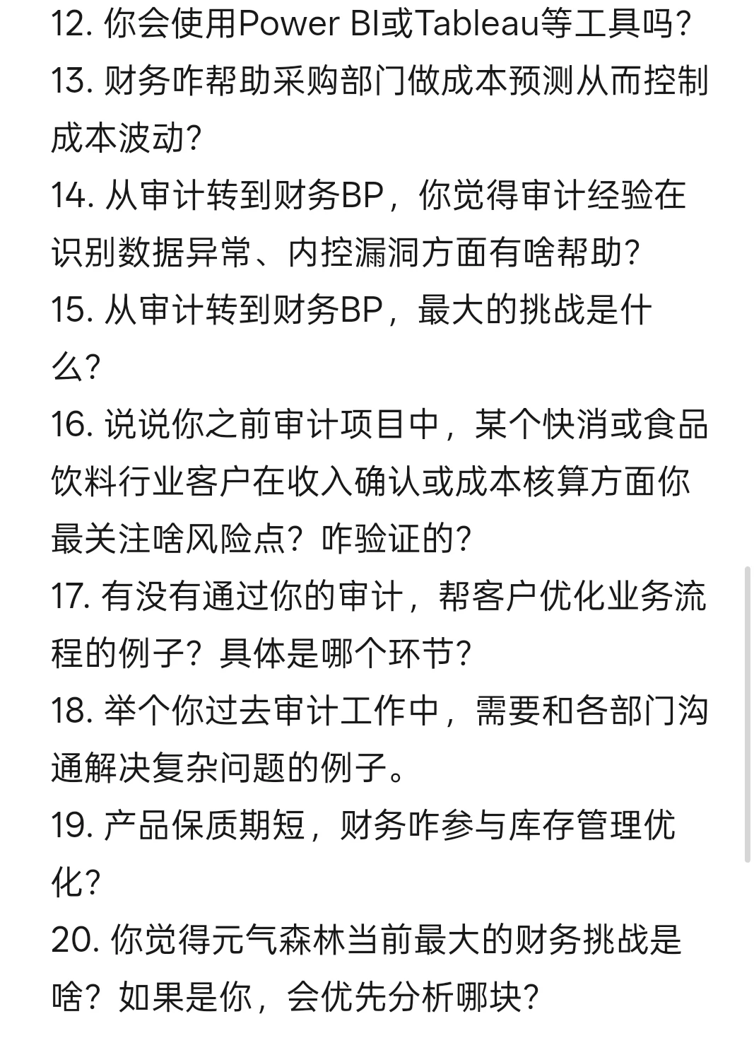 15. 从审计转到财务BP,最大的挑战是什么?