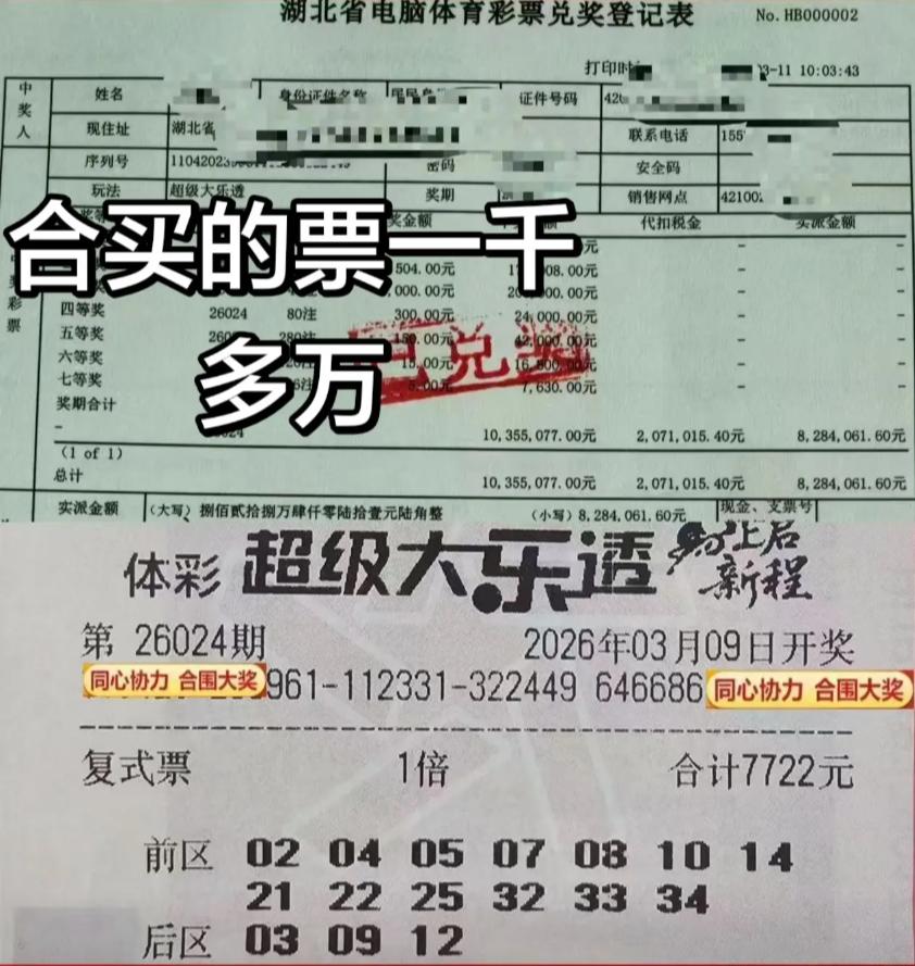 1035万大奖被领走!最近火热的7722复式中1035万大乐透头奖的票,已盖上兑奖专用章,奖金明细单据也已晒出,显然奖金已被全部领走,领奖时间显示3月11日上午10点多才办完手续,距离开奖已过去两天,不知道中间到底还究竟了哪些纠葛,但的确是已顺利领奖,正常参与合买的彩友肯定没问题能分到钱,但到底还有多少人是被一票多卖给忽悠了,那就不得而知啦!