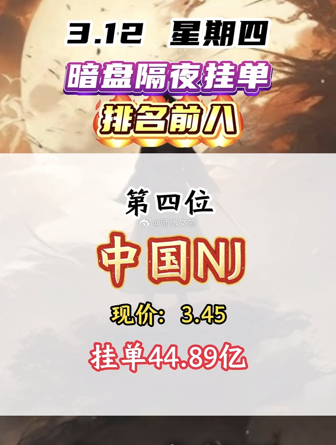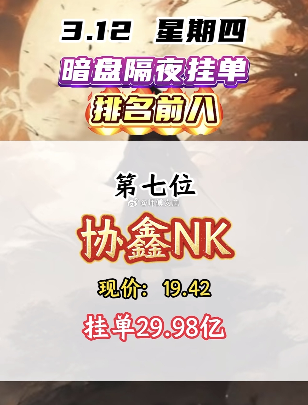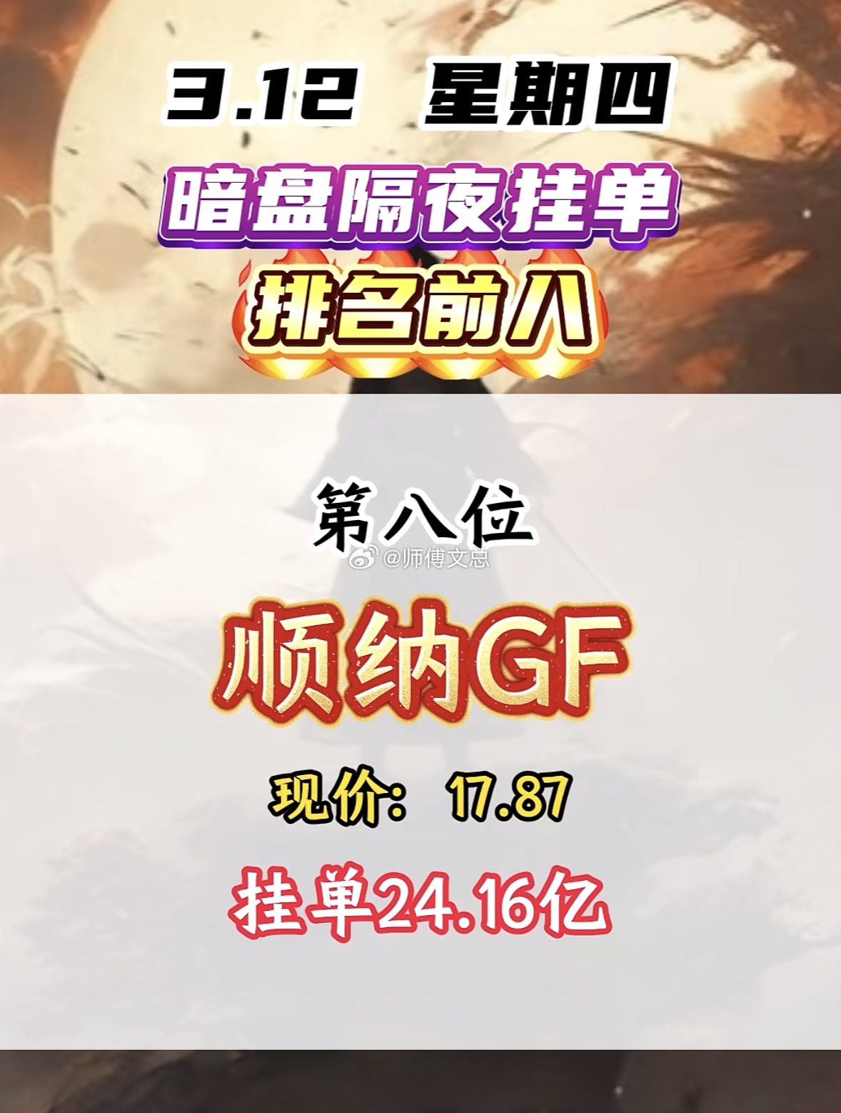 3月12日暗盘隔夜挂单揭晓顺纳股份这情况有点意思。昨天它还是第五名,现价17.6