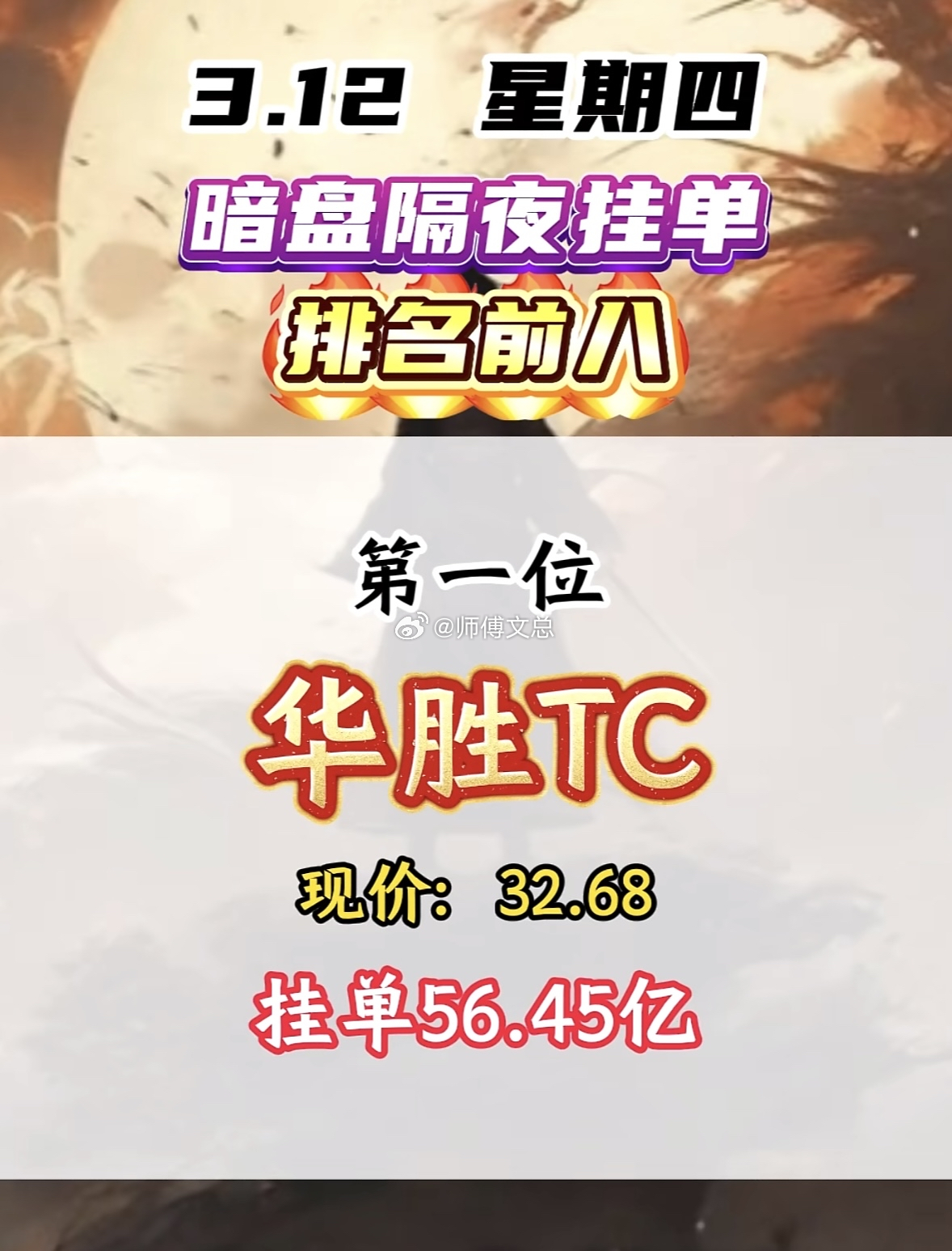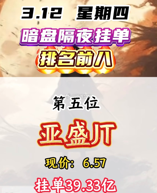 3月12日暗盘隔夜挂单揭晓
