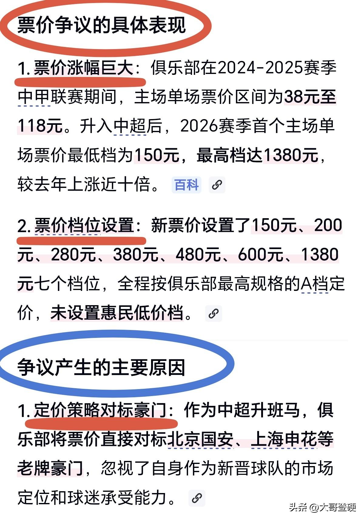 没有对比,就没有伤害!看看大连英博和重庆铜梁龙,中超首个赛季的票价对比[吃瓜群众] 大连英博中超首个赛季,票价分为六档:60元、100元、120元、150元、180元、300元[可怜] 重庆铜梁龙中超首个赛季,票价分为七档:150元、200元、280元、380元、480元、600元、1380元[恐惧] 同样是中超首个赛季,大连英博的票价,对于普通球迷而言,可谓是诚意满满[赞] 即便是到了2026赛季,大连英博的票价稍微小涨,散票从80元到600元不等,但也远没有升班马重庆铜梁龙的票价那么夸张,重庆铜梁龙这个票价,属实有点儿高的离谱了[震惊] 要知道!大连梭鱼湾足球场交通便利,单场最高上座62330人、赛季场均超5.8万人,这里可是三面环海的“亚洲第一主场” 啊[加油] 不得不说,看一个俱乐部对球迷到底有没有诚意,到底割没割韭菜,球票价格不会说谎,球迷的反应也不会说谎[哈欠]