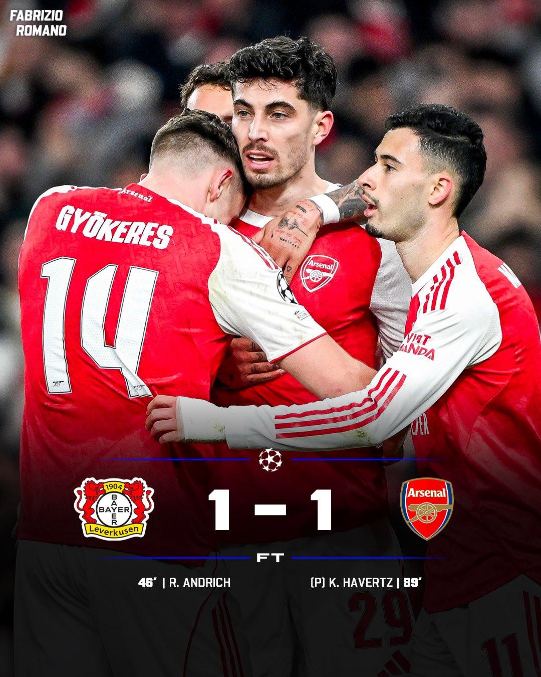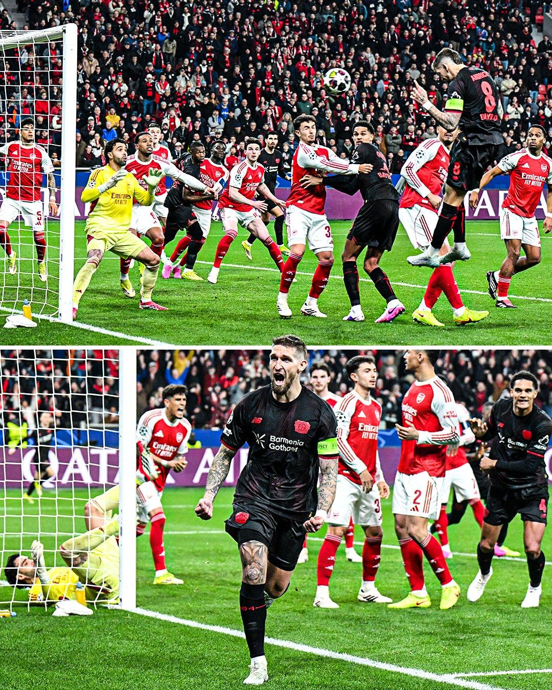 阿森纳1-1客场险平勒沃库森,终结本赛季欧冠全胜记录。 药厂在主场以阿森纳擅长的角球首开记录,而曾是药厂旧将的哈弗茨将替补上场的马杜埃凯制造的点球罚进后帮助球队绝平对手,避免了一场失败。阿森纳在防守角球时明显漏人了,后插上的安德里奇无人防守,轻松头球破门! 欧冠16强比赛截止目前,已出战的四支英超球队无一胜绩,两平两负,就看接下来曼城和切尔西的表现了。