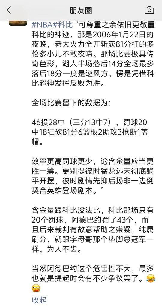 81>100,因为时代发展,篮球在进步。 81>83,因为时代发展,篮球在退步。 阿德巴约这个83分,有实力也有水分。是神迹还是闹剧? 但得分高低并不能代表一名球员的实力,超级得分手杜兰特职业生涯最高分仅55分,你说是杜兰特强还是阿德巴约强?