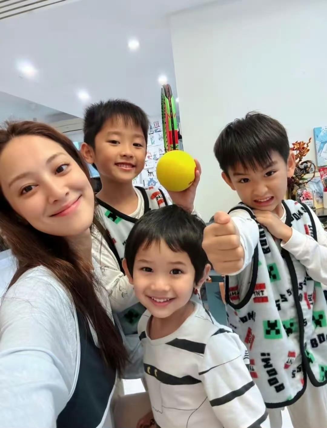 郑嘉颖妻子陈凯琳分享与三个儿子的温馨合影,画面中她活力四射、状态轻盈,宛如少女般