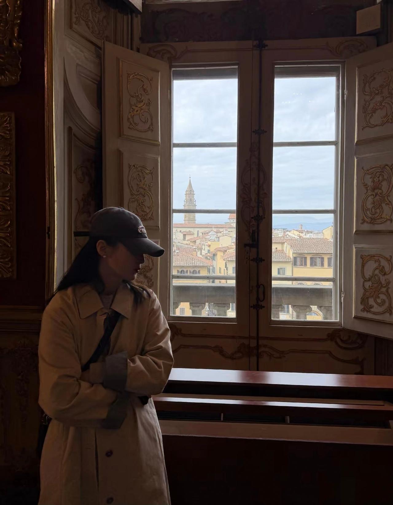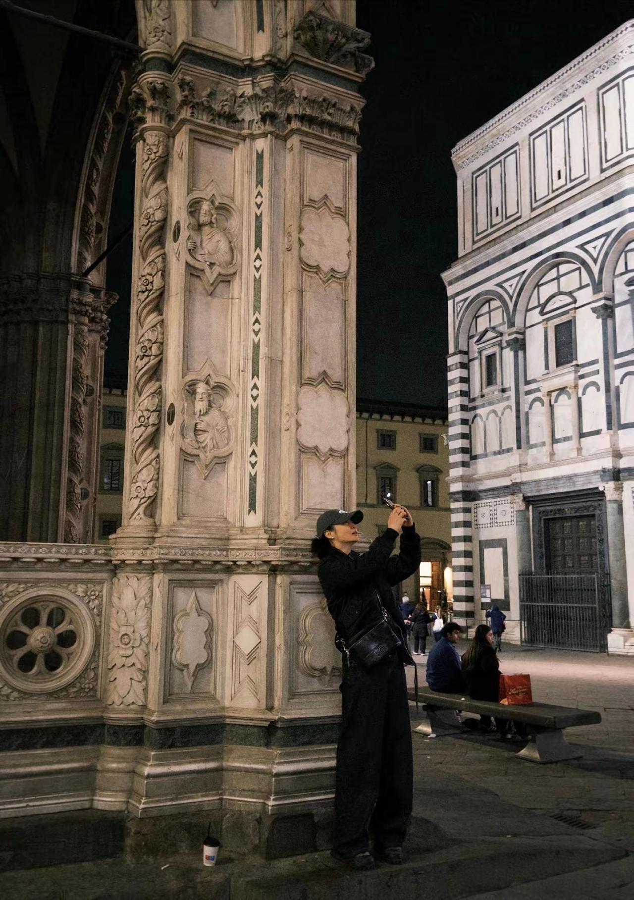 蒋勤勤在社交平台分享了一组佛罗伦萨旅行随拍,她身着米色长款风衣漫步于古城街巷,优