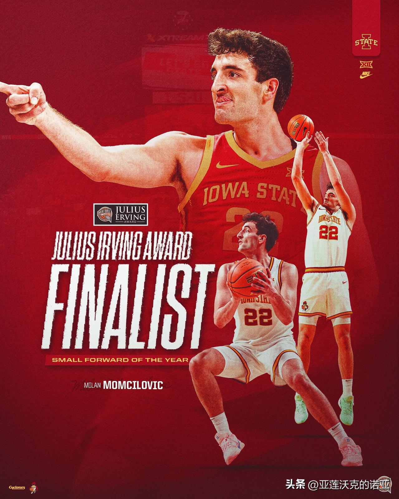 朱利叶斯-欧文奖=全美最佳小前锋的最终五人候选名单,2026年nba选秀 杨百翰大学AJ Dybantsa,佛罗里达大学Thomas Haugh,爱荷华州立Milan Momcilovic,田纳西大学Nate Ament,德州大学Dailyn Swain。