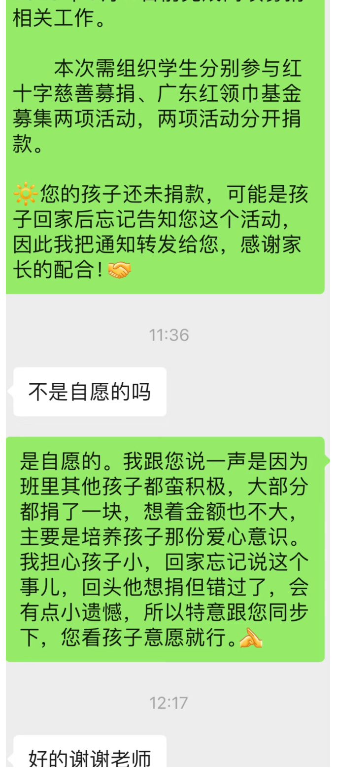永终 4 2026-03-12 15:06 我作为一名不称职的班主任,我的原则就是,1通知到位,2尊重学生与家长的选择,3别人的话当放屁 捐款,研学,课后服务,保险。群里发一遍通知,每个家长转发一遍,我的通知工作到此结束。 24年学校组织研学,我班里有三分之二不参加的,主任让我再催一催,催你个大头鬼啊,研学2000多块钱,老子又不是销售。“主任,我已经每个人都私信通知了。”