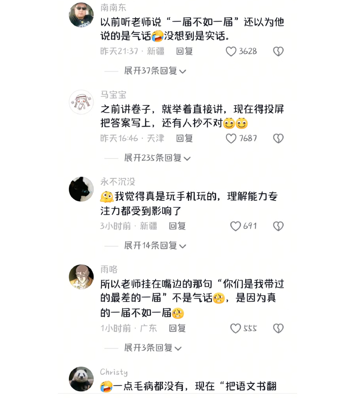 以前听老师说“一届不如一届”还以为他说的是气话,没想到是实话。
