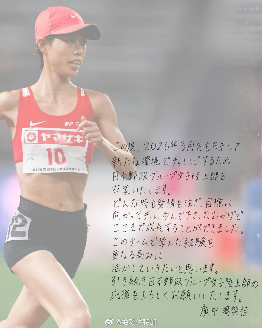 广中璃梨佳从日本邮政女子实业团退部,下家暂时没有宣布。日本邮政目前的王牌仅剩铃木