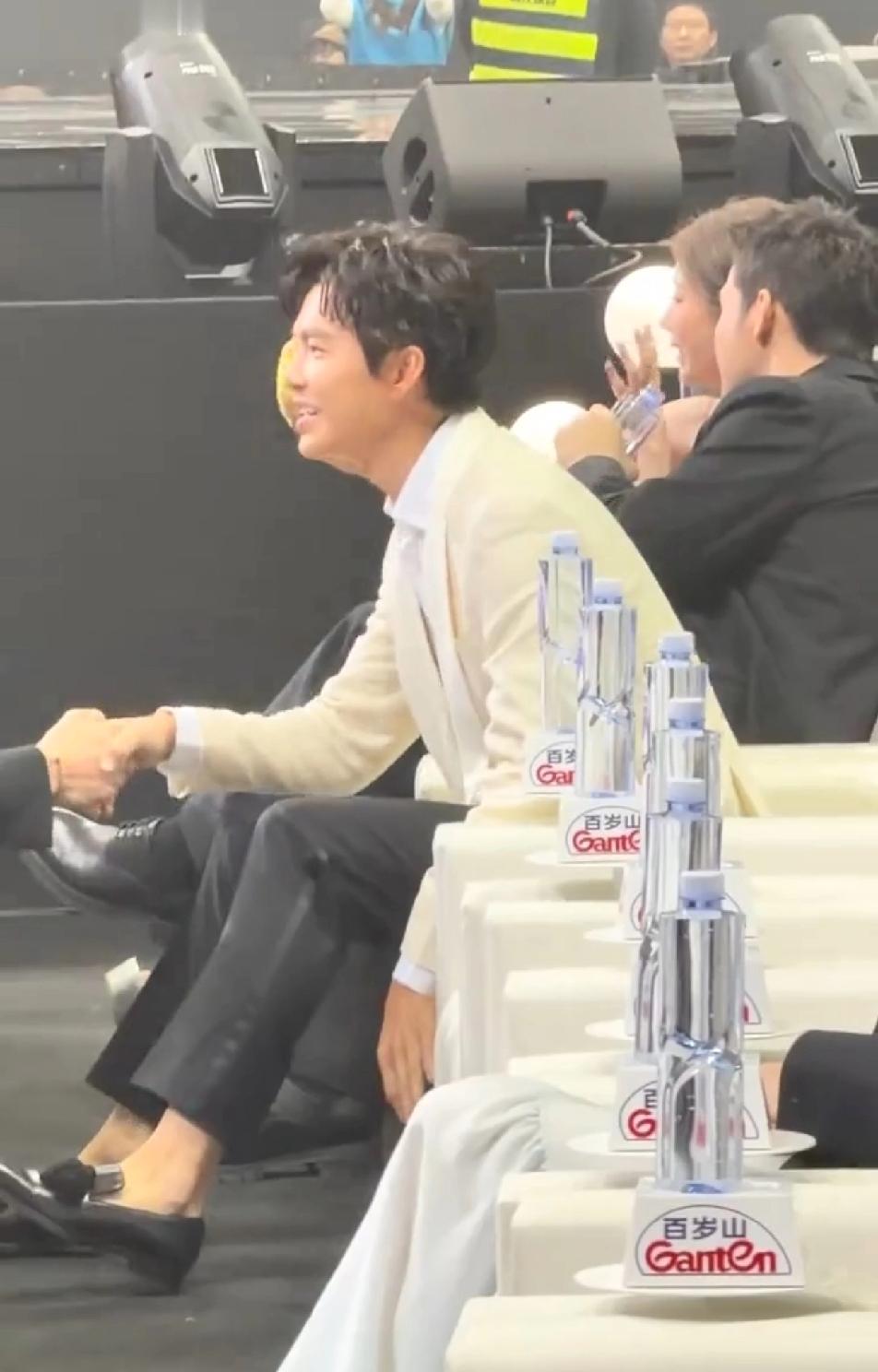 钟汉良这光脚脖子带亮条的九分裤配豆豆鞋款的皮鞋的搭配还真不是谁都能穿好看的,真的,51岁这样穿,很容易看起来又土又油腻的,但穿在钟汉良身上就勉强还能看的,毕竟哥的气质太儒雅太斯文了,就算如此油腻的穿搭,哥也能用好气质hold住!