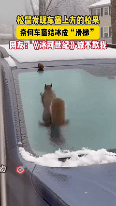 “解释不清了!”车主一早准备开车上班,刚走到车边,就看到车窗上有东西在拼命折腾,走近一看,竟然是只松鼠,正四爪并用地想抓到松果,可车窗一夜结冰,整块玻璃很滑,滑到松鼠原地踏步。网友:这不就是现实版冰河世纪吗! 车主没敢出声,生怕吓跑它,举起手机就拍。松鼠的目标很明确,就是车窗上方一颗饱满的松果,奈何车窗结冰,这冰面光滑得像抹了油,松鼠的小爪子根本抓不住劲儿。可它就是不放弃,眼瞅着松果就在眼前,偏偏就是够不着。 网友 "《冰河世纪》诚不欺我,松鼠奎特为了松果能干出任何事!" "别爬了,会瘦的!那点热量都消耗完了!" 松鼠这种动物,天生就有储藏食物的本能,秋天,它们会把松果、坚果藏在各种角落,车缝、树洞、墙缝,甚至花盆里都能塞。 到了冬天,全靠这些存粮过活。这颗松果在它脑子里就是"我的财产",丢了就等于少了一顿饭。 可冰面这东西,物理特性就是摩擦力小。松鼠的爪子再尖,在冰上也施展不开,使再大劲儿也是原地打转。 松鼠不懂这个道理,它只知道我要拿到我的松果,至于怎么拿,它只会一个办法:爬,爬不上去就继续爬。 看着这场景,又好笑又心酸,松鼠有目标,也在行动,目标有了,行动也有了,怎么就不成功呢? 咱们不也常这样吗?工作上遇到难题,明知道这条路走不通,还非得一头撞到南墙才回头。想减肥,天天跑步累得半死,可该吃的宵夜一顿不落;想存钱,每个月都发誓节省,转头看见打折又管不住手。不是不努力,是使错了劲儿。 生活里,咱们都是那只爬冰窗的松鼠,为了自己认定的松果拼命往上爬。可爬之前,是不是该先看看,这条路对不对?有时候,低头找找别的路,比埋头硬爬管用得多。 你有没有遇到过这种情况:明明很努力,却怎么都够不着目标?