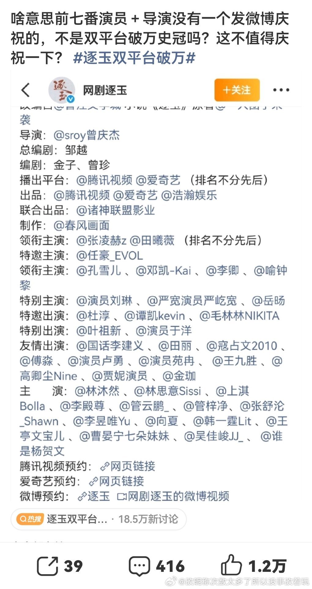 撒意思导演和男主还敢带破万词条田之前不是怒喷男友粉丝、说不是抢资源是替补的受不了委屈耿直小辣椒人设吗?破万词条都不敢带?