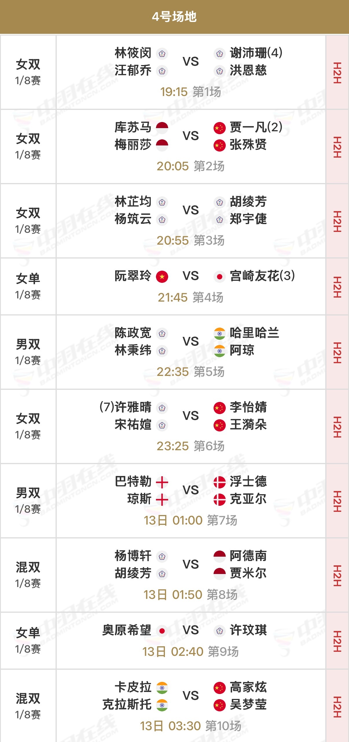 【四号场地】②🇨🇳贾一凡/张殊贤vs库苏马/梅丽莎🇮🇩⑥🇨🇳李怡婧/王漪朵vs许雅晴/宋祐媗ᴛᴘᴇ⑩🇨🇳高家炫/吴梦莹vs卡皮拉/克拉斯托🇮🇳