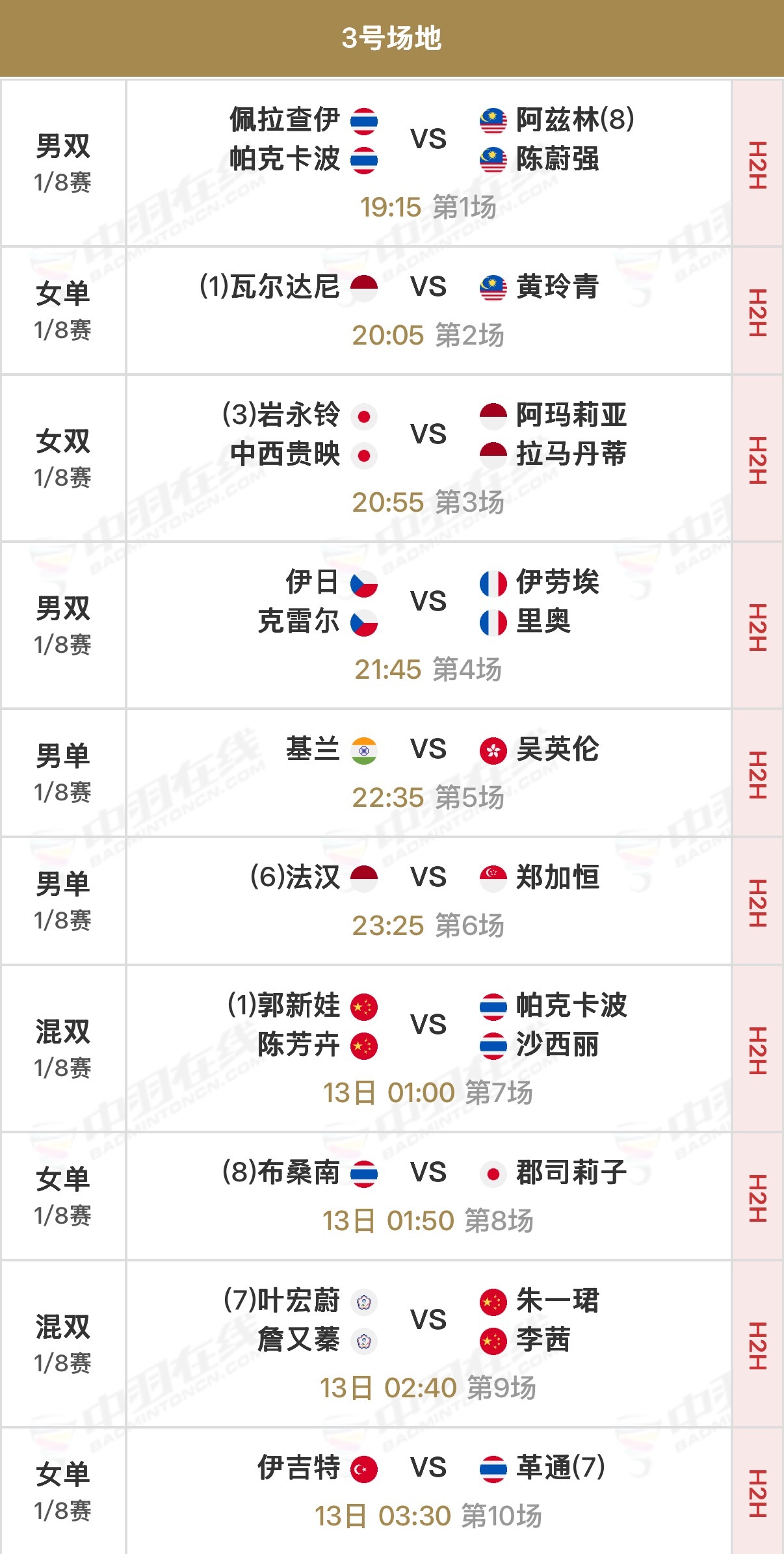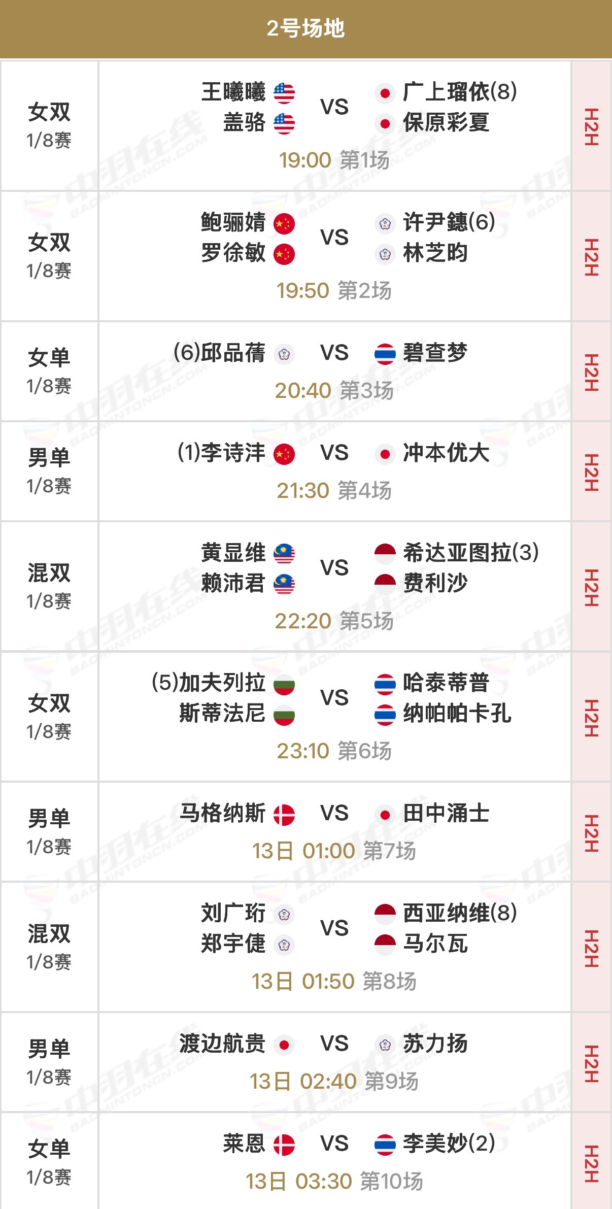 2026年瑞士羽毛球公开赛 1/8决赛北京时间19:00开始,可在羽协公众号/视频号、优酷观赛实时比分:网页链接官方赛程:网页链接