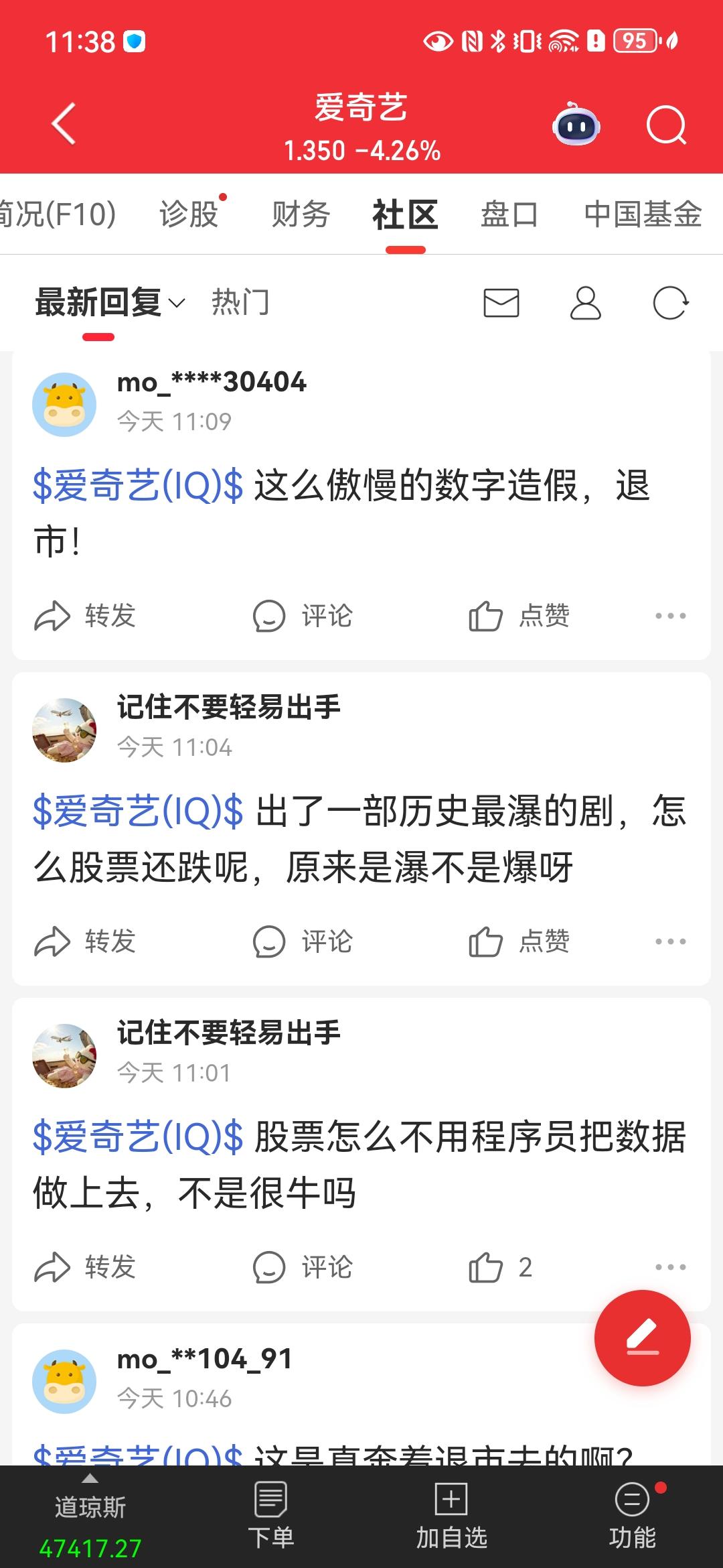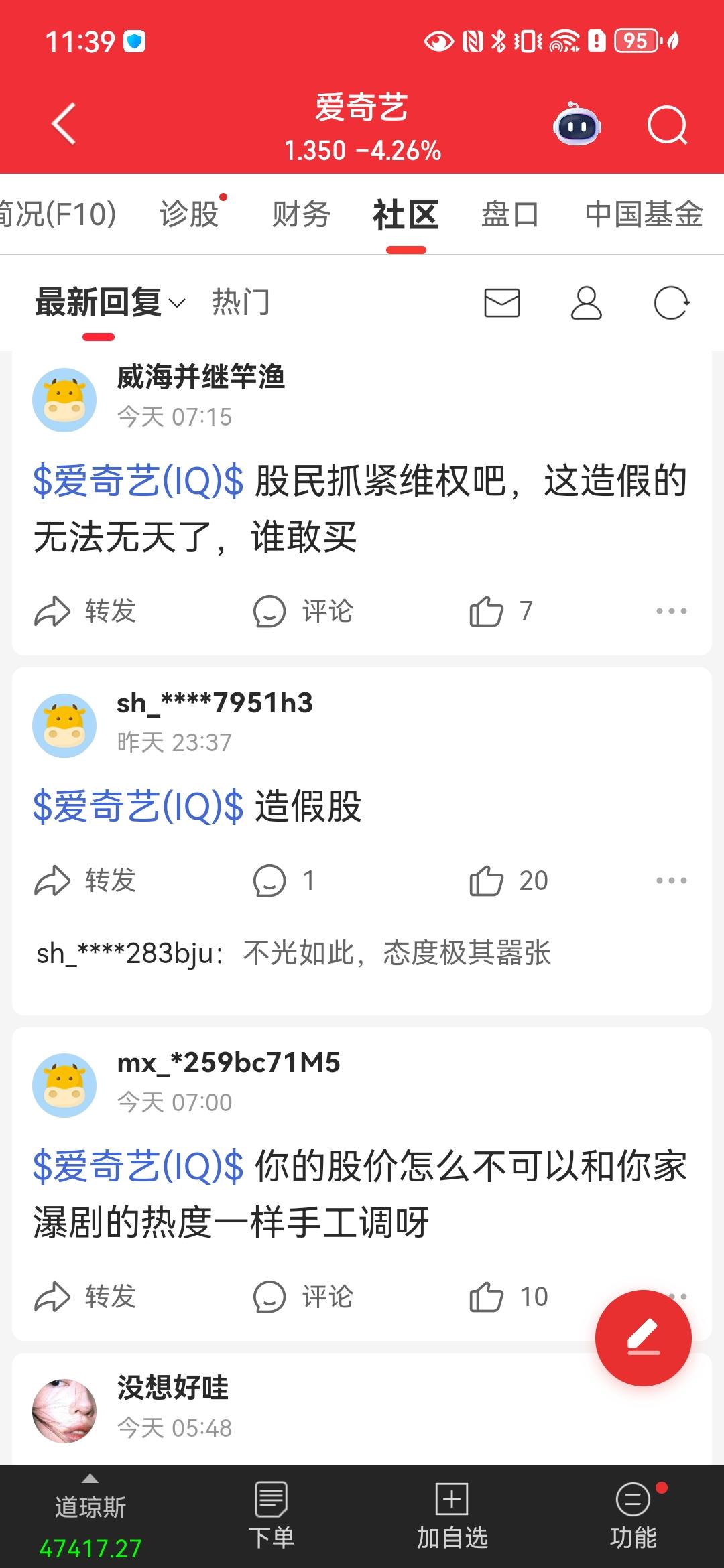 笑死[笑哭]同花顺搜爱奇艺,社区里都在喷[笑哭]