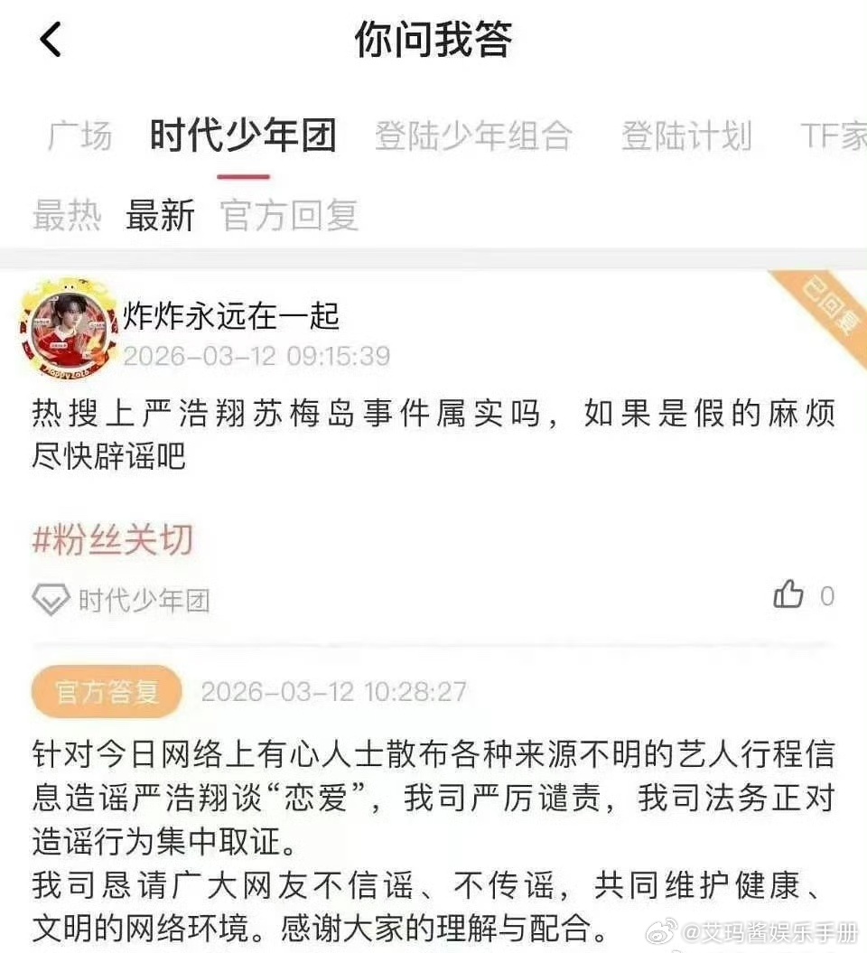 🍉网传严浩翔情人节前往苏梅岛被热议目前时代峰峻高会已辟谣严浩翔“恋爱”传闻严浩翔 苏梅岛时代峰峻辟谣严浩翔谈恋爱