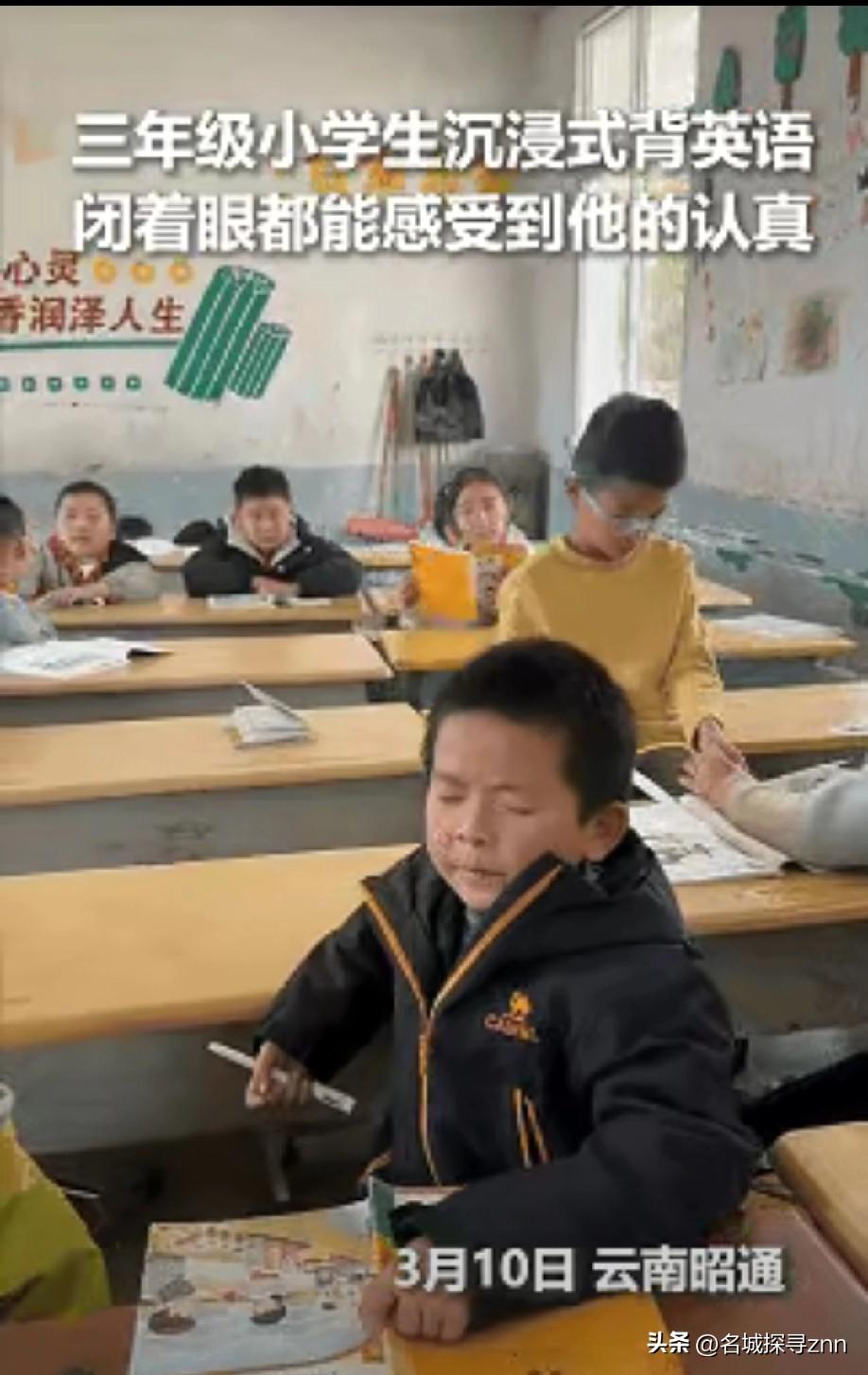上人民日报了!云南昭通,开学第一节课刚上完,老师刚准备休息,结果一回头,看到一学生正在沉浸式背英语,这一幕被老师拍下发到网上火了。 画面里的三年级孩子攥着半截白色笔杆,眼睛半眯着,嘴唇快速开合,念着一句简单的“I'm new here”。 周围的同学有的翻着课本,有的趴在桌上休息,没人打扰他,他也没看任何人,整个身子微微前倾,像是要把眼前的英语句子吞进肚子里。 老师站在他身后好几秒,他都没察觉,直到快门按下的轻响传来,他才猛地抬眼,眼里还带着没散的专注。 老师后来回忆,拍视频的时候没多想,就是突然被这股劲儿戳中了。乡村小学的课堂不算宽敞,墙面上贴着“点亮心灵 香润泽人生”的标语,课桌椅有些磨损,却摆得整整齐齐。 这个孩子平时就不爱说话,上课永远坐得最直,作业写得比谁都工整,遇到不会的单词会攥着课本追在老师身后问,哪怕发音带着浓重的乡音,也敢扯着嗓子念。那天刚下课,别的孩子都在放松,他却抱着英语书不肯放,像是要把刚学的句子刻进骨子里。 视频最初只是发在老师的私人社交账号,没想着要火。可没几天,这段十几秒的画面就被转得到处都是,有人给它配了文字“三年级小学生沉浸式背英语,闭着眼都能感受到他的认真”,很快就冲上了热搜,连人民日报都转发了。 评论区里挤满了人,有人说“这才是学习最本真的样子,没有技巧,全是认真”,有人想起自己小时候背课文的模样,攥着书摇头晃脑,连吃饭都在念叨,有人翻出自己背乘法口诀的旧时光,也有人心疼孩子是不是太用力,还有人冷静地说“别过度消费孩子,他只是在做自己的事”。可更多的人在说“看到他眼里的光了吗?那是对知识最朴素的渴望”。 没人给这个孩子贴过“学霸”的标签,他也不知道什么是“流量”。视频火了之后,有记者想来学校采访,被老师婉拒了。 老师说,不想打扰孩子的生活,他只是做了自己该做的事——认真学习。这个孩子的家在山脚下,每天要走半小时山路来上学,书包里除了课本,还装着妈妈给的煮土豆。 他背英语不是为了考高分,也不是为了上电视,只是听老师说,学好英语就能看懂外面的世界,就能知道山那边的人在说什么,在做什么。 他想把这些陌生的字母念熟,想让自己的声音能传得更远一点。他甚至不知道自己上了人民日报,还在每天早上背着书包走山路,课间抱着英语书念,发音还是带着乡音,却比以前更响亮了。 这段视频火了之后,给这所乡村小学带来了些细碎的变化。有人寄来了崭新的英语绘本,有人捐了点读笔,还有城里的老师主动联系,说想给孩子们上几节线上英语课。 校长说,这些年乡村教育的条件好了不少,可最珍贵的从来不是硬件,而是孩子们眼里的光,是老师愿意陪着他们慢慢走的耐心。 老师说,这些捐赠的物资会好好用在每一个孩子身上,不会因为某一个孩子火了就特殊对待,因为每个孩子都值得被认真对待。 这个孩子的“沉浸式”背书,不是个例,是很多乡村孩子的日常——他们在简陋的教室里写字,在昏黄的灯光下读书,在山路上背着书包赶路,却从来没放弃过对知识的向往。 有人说,现在的孩子太浮躁,可这个云南昭通的三年级学生用行动告诉大家,认真从来都不分年龄,不分出身。他没有优越的条件,没有先进的设备,却凭着一股不服输的劲儿,把简单的英语句子念得掷地有声。 这份认真,不是表演,不是作秀,是一个孩子对学习最纯粹的敬畏,是乡村教育里最动人的微光。它让我们看到,哪怕在最普通的课堂里,也能长出最耀眼的希望。 各位读者你们怎么看?欢迎在评论区讨论。