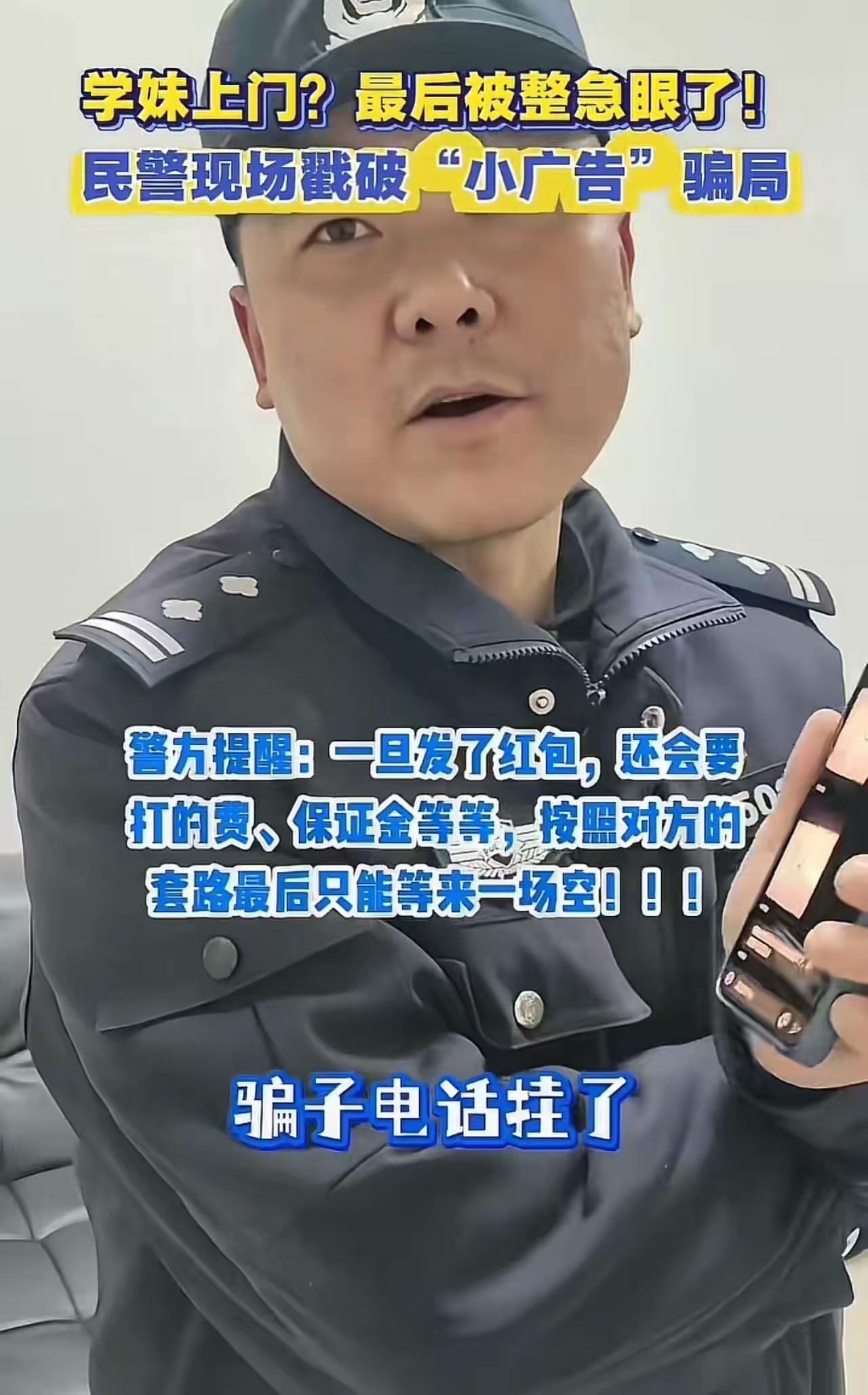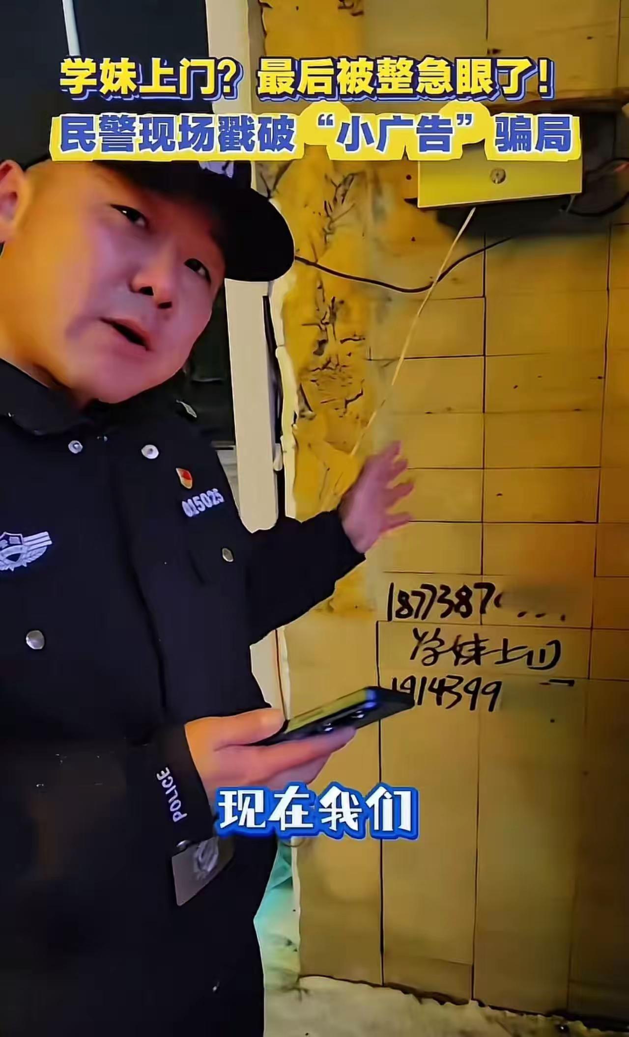 “美女上门服务是真的吗?”民警亲自打电话试验,骗子套路大曝光:专坑那些“色迷心窍”的傻子! 大伙儿平时上厕所、走楼道,是不是总见着那些神神秘秘的小广告? 一张巴掌大的纸片,印着穿着暴露的美女照片,下面一行醒目的黑体字:“XX会所,高端美女上门服务,24小时热线xxxxxxxx”。贴得那叫一个瓷实,撕都撕不干净。 有人嗤之以鼻,随手撕掉;有人多看两眼,心里痒痒;还有人,真就拨通了那个电话。 结果呢?钱没了,人没见着,还不敢报警——因为丢人。 最近,安徽某地派出所的民警就干了一件“接地气”的事儿:他们亲自拨打了这些小广告上的电话,全程录音录像,把骗子的套路扒了个底朝天。视频一出,网友直呼:“这演技,奥斯卡欠他们一座小金人!” 民警老张换上便装,拨通了电话。那头很快接起,一个甜得发腻的女声传来:“您好,先生,请问需要什么服务?” 老张压着嗓子:“你们这……真有美女上门?” “有的有的,各种类型都有,清纯学生、白领丽人、成熟少妇,您想要什么样的都有。价格从300到1000不等,包夜更优惠哦~” 老张:“那怎么操作?” “先生您先加我微信,选好套餐后支付200元定金,我们这边马上安排美女上门。到了您楼下,您再付尾款。” 套路开始了。 老张加了微信,选了所谓“398元套餐”,转了200元定金。半小时后,一个自称“司机”的电话打来:“先生,美女已经送到您小区门口了,但按照公司规定,您需要再支付800元人身安全保证金,保证美女的安全,完事儿后这钱退还给您。” 老张心里明镜似的——这是第二刀。他假装犹豫:“你们不会骗我吧?” “怎么会呢先生!我们做正经生意的,美女马上就到您楼下了,您差这800块?” 老张又转了800。 又过了十分钟,第三个电话来了,这次换了个凶巴巴的男声:“先生,我是公司经理。刚才美女上车时被监控拍到了,现在公司有风险,您得再交2000元风险保证金,完事儿后和之前的一起退给您。” 老张:“我没钱了。” 对方立刻变脸:“没钱?你耍我们?告诉你,我们已经知道你家地址,你不交钱,明天就带人去你家门口堵你,让你在小区里抬不起头做人!” ——恐吓,是他们的第三刀,也是致命一刀。 很多受害者就是被这一刀吓住的。明明已经意识到被骗,但害怕对方真的上门闹事,害怕家人知道,害怕丢人,于是咬牙继续转账。几千、几万,甚至有人被骗光积蓄,还背上网贷。 而真相是什么? 根本没有美女,没有上门,从头到尾就是几个抠脚大汉躲在出租屋里,用变声软件、分工合作,演的一出戏。你转的每一分钱,都被他们拿来买烟抽、买酒喝,然后嘲笑电话那头的你:“又来个傻子!” 老张亮明身份后,对方秒挂电话,微信拉黑。再打过去,已是空号。 这段视频曝光后,评论区彻底炸锅: “这些骗子太可恶了!但说实话,会打这个电话的,有几个是干净的?” “苍蝇不叮无缝的蛋。要不是心里有色念,怎么会上这种当?” “我表哥就被骗过,转了5000块,人没见着,还不敢报警,天天在家唉声叹气。” “支持民警!这种小广告就该连根拔起,太害人了!” 说得太对了。 骗子的套路其实并不高明,翻来覆去就那么几招:先用色诱引你上钩,再用定金小刀割肉,接着保证金、风险金层层加码,最后恐吓威胁让你不敢声张。 可为什么还是有人前赴后继地上当? 因为骗子精准拿捏了人性的两个弱点:贪色,和怕丢人。 贪色,让你失去理智,连“上门服务先交定金”这种明显违背常识的规矩都深信不疑;怕丢人,让你被骗后不敢报警、不敢声张,只能打碎牙往肚里咽,成为骗子眼中最肥的“沉默羔羊”。 而那些骗子,正是吃准了这一点,才敢肆无忌惮地招摇撞骗。 所以,今天写这篇文章,不只是为了曝光骗子的套路,更是想提醒所有人: 第一,洁身自好,是最好的防骗术。心里没鬼,鬼就找不上你。 第二,如果不幸被骗,请第一时间报警。你越沉默,骗子越猖狂。别让你的“不好意思”,成为他们继续害人的底气。 第三,看到这种小广告,随手撕掉。你撕掉一张,可能就救了一个差点上当的人。 最后,把民警老张的一句话送给大家:“别以为自己聪明,骗子不骗你,只是因为你还没遇到为你量身定做的剧本。” 守住底线,擦亮眼睛。别让一时的色迷心窍,变成一辈子的笑话和伤痛。 转发出去,让更多人看清骗子的真面目!
