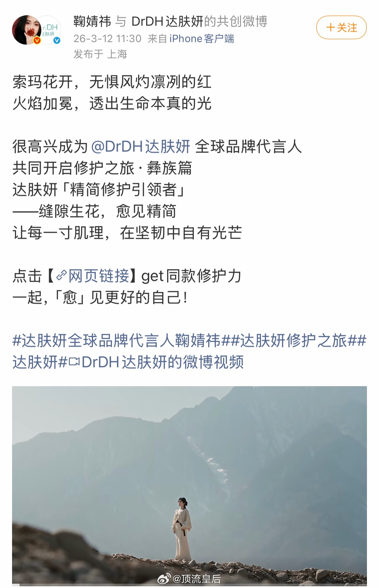 鞠婧祎微博开屏太美了吧,恭喜新代言官宣。