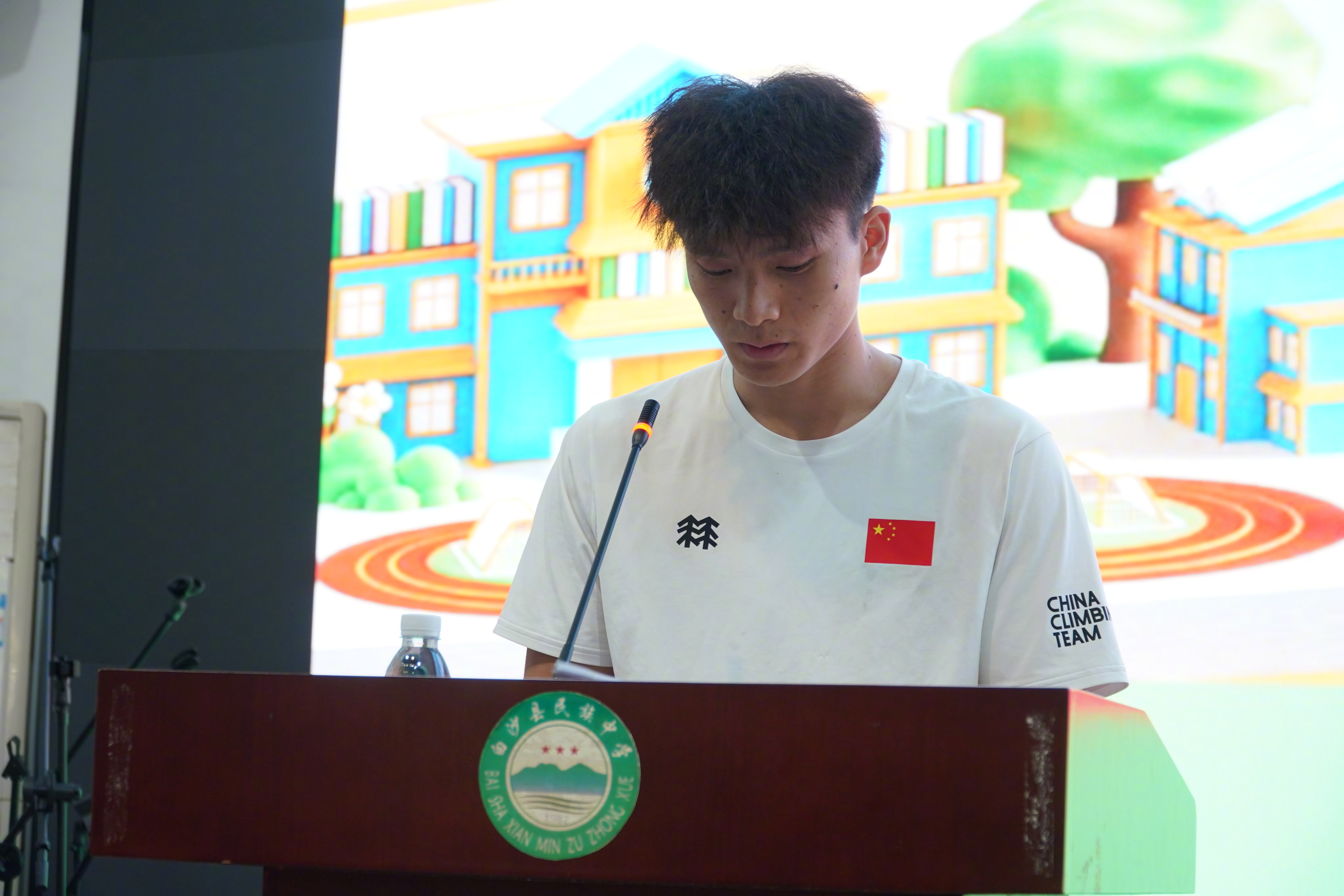 中华体育精神开讲啦 3月11日,“中华体育精神大讲堂”校园宣讲活动、“冠军体育课”运动员进校园活动来到海南省白沙黎族自治县民族中学。钟齐鑫、伍鹏、龙见国等国家攀岩队教练员、运动员、工作人员走进校园,讲述“攀登”故事,带领学生体验攀岩魅力,将中华体育精神融入一堂特殊的体育思政课。