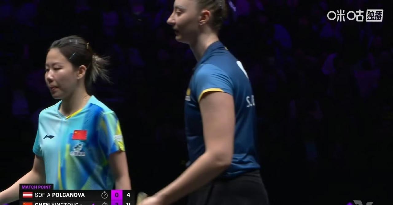 陈幸同🇨🇳状态不错[赞][笑哭], 前两局陈幸同🇨🇳11-5,11-9领先波尔卡诺娃🇦🇹 , 这是2026WTT冠军赛重庆站女单首轮1/16决赛。 两人曾四次交手,同同从未输过,虽然今天奥地利名将大白鹅波尔卡诺娃🇦🇹头上绑了个和斯佐科斯一样的紫色大蝴蝶结,幸运也还在同同这边。 这不,很快,陈幸同🇨🇳就3-0横扫波尔卡诺娃🇦🇹,第三局比分为同同11-4。 下一轮对阵:陈幸同🇨🇳VS石洵瑶🇨🇳 !
