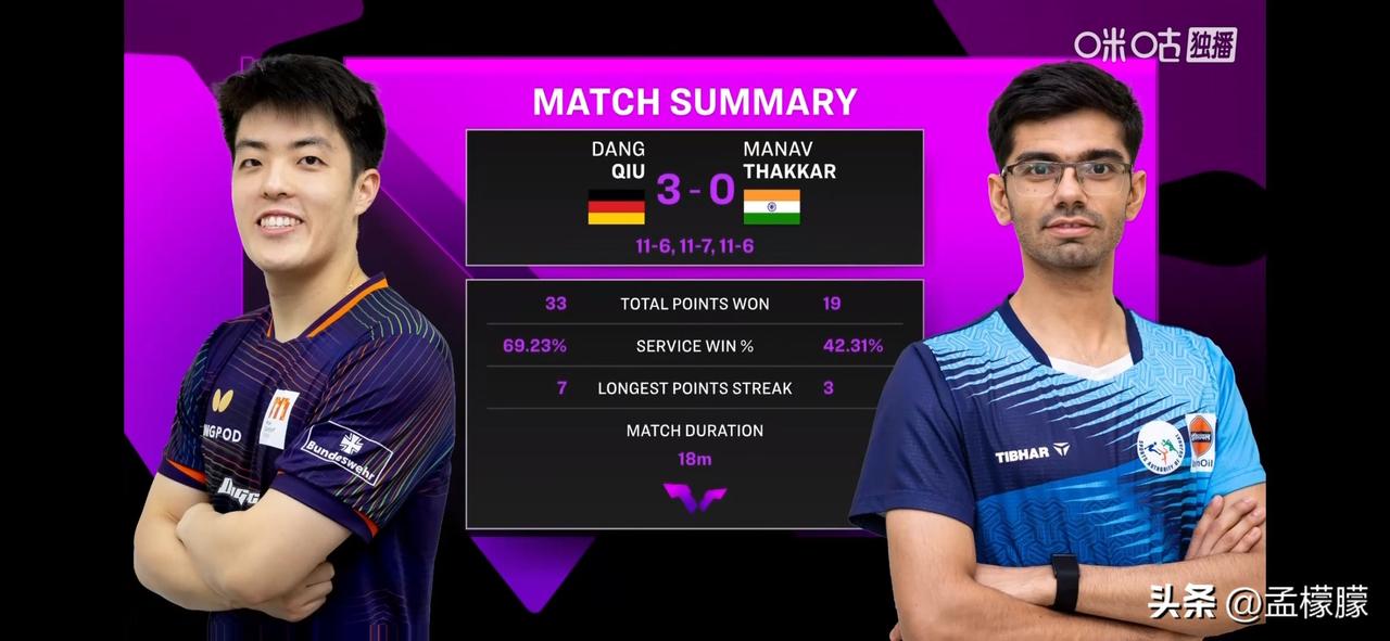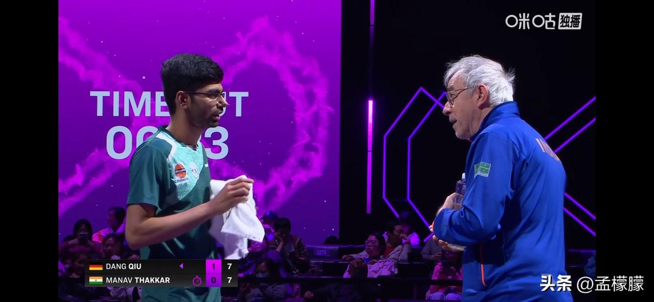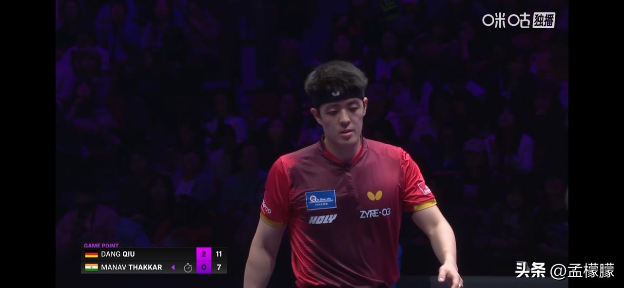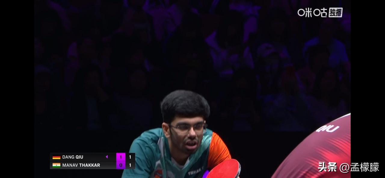 男单1/16决赛 邱党(德国🇩🇪GER)3-0曼纳弗·维卡诗·塔卡(印度🇮🇳IND)【11-6,11-7,11-6】 塔卡谜之暂停,他从5-7追到7-7叫了暂停,最后连输四分,7-11输了第二局。 乒乓球乒乓重庆冠军赛 重庆乒乓冠军赛